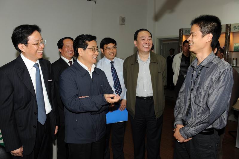 当赵洪祝一行来到图书馆,走进艺术设计与人文系2009届毕业生设计作品展时受到师生们的热烈欢迎。系负责人宋连凯介绍说,我们推行“实习、毕业设计和就业一条龙”培养模式,本次的展品,绝大多数作品展题均取自学生实习单位的真实项目,80%以上已被客户采用实施。赵洪祝高兴地说道:高职的味道很浓啊!省委领导们,一边看,一边听师生的介绍,当听到学生中有的自主创业,开设公司,获得成功;有的参与大型项目设计,成为单位的主笔设计师;学生连续四年就业率100%,专业对口率超过80%时,赵洪祝兴奋地对学院领导说,你们的孩子充满成就感,他们能在社会上受到欢迎,有这样高的就业率,就说明社会对他们有需求,说明你们的培养方式是科学的,使学生真正能学到本事,能够走向社会去闯荡。赵洪祝同时祝贺同学们学业有成,勉励大家创新创业,不断进步。