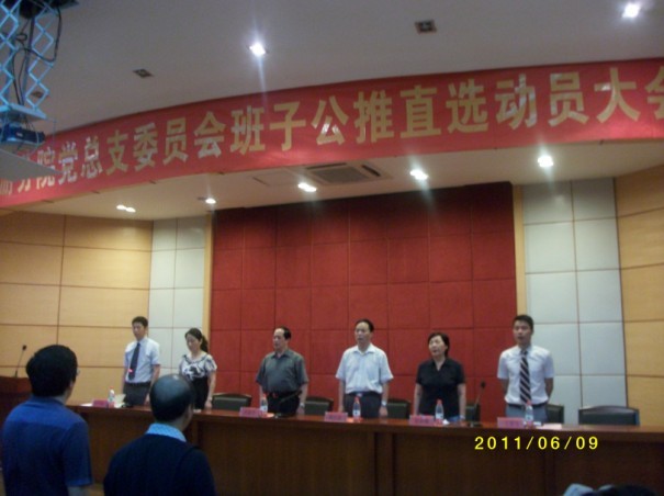 2011年6月9日,中共民航与旅游分院总支委员会“公推直选”动员大会在学院学术报告厅隆重举行。学院党委书记、院长洪致平,党委副书记周治斌,学院党委有关方面负责同志谢鑫、刘志仁、张海京应邀出席了大会。民航与旅游分院领导赵淑桐、欧阳驹、王贤军、黄华,分院全体教师、学生代表,学院兄弟系部党组织代表200余人参加了动员大会。