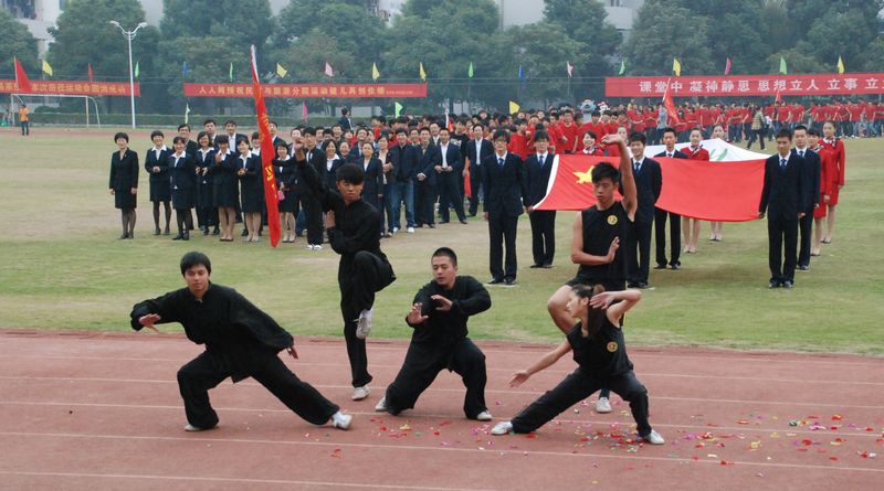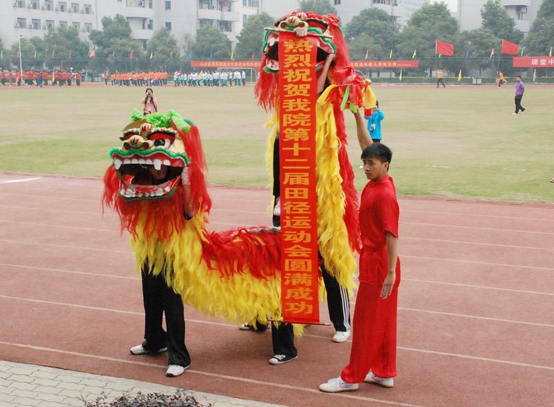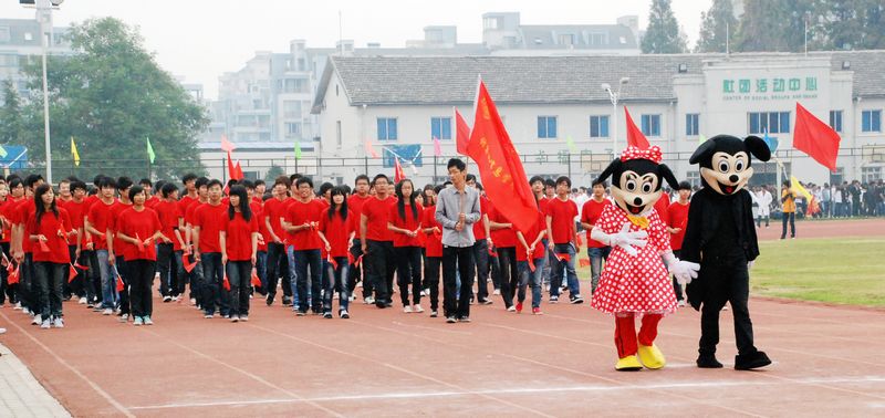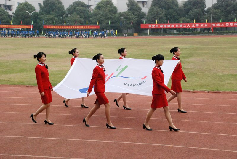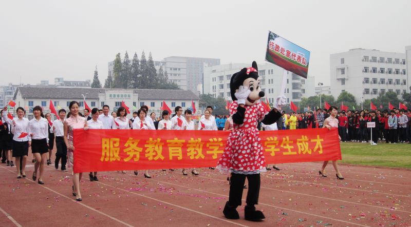来自各分院、系的运动员、师生代表团排列着整齐的方阵依次经过主席台。民航分院方阵在舞狮表演的引领下身着靓丽的制服,信息系引领时代潮流的多元化,工商系富有青春的啦啦操表演,经贸系的太极方阵以及艺术系古代蹴鞠、现代足球的展示无不透露着育英学子积极向上的精神风貌。