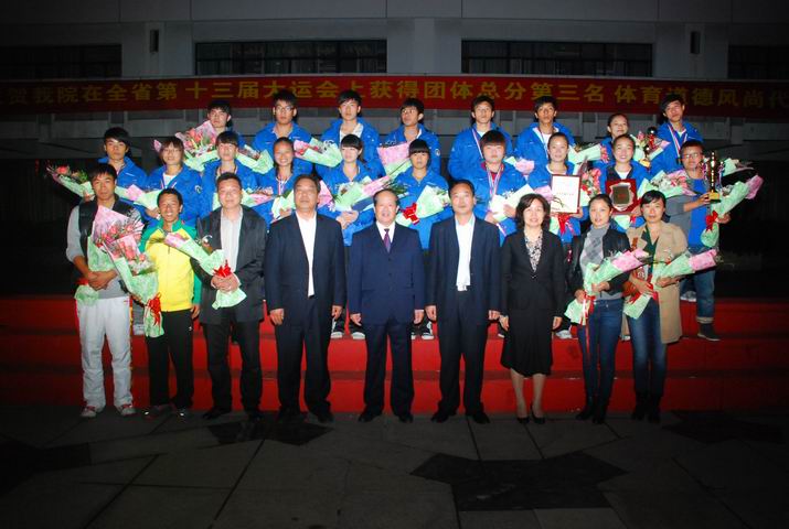 本届大运会,我院在武术比赛中夺得5金4银4铜等20项单项荣誉,独揽男女团体、女子乙组团体、男子乙组团体三项冠军;游泳比赛获1金1银3铜;健美操比赛中“啦啦操”项目获1块铜牌,这是继2007年浙江省第十二届大运会我院获得6金1银6铜、田径团体总分第三名、综合团体总分(272分)第五名等殊荣后取得的又一骄人成绩。