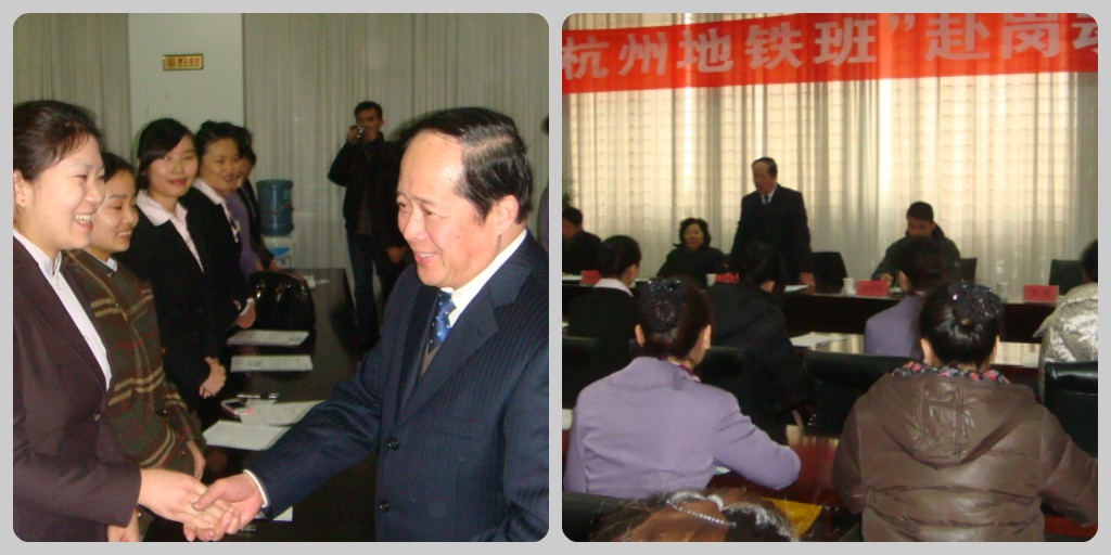 会议期间,学院党委书记、院长洪致平及分院领导还亲切看望了“杭州地铁班”全体学生,与他们一一握手并与他们合影留念。