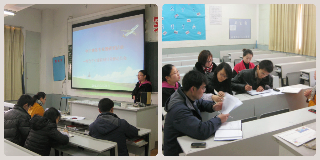 会上,民航与旅游分院院长助理黄华老师首先结合学院2012年党政工作要点,分析了空乘特色专业建设的重要性。学院党政工作要点指出着力实施三三战略,将特色专业建设作为重中之重,专业建设是学院最核心的教学基本建设。因此,对于分院和空乘教研室来讲,我们必须全力做好省市两级特色专业建设,凸显分院优势,体现空乘特色。