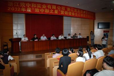 5月8日下午,2012年度“致中和之星”营销储备生订单班开班仪式在学院学术报告厅举行。学院副院长秦学礼,招就办主任方明,教务处、工商系、经贸系相关负责人,浙江致中和实业有限公司行政总监曹利丰,营销总监蒋文剑以及销售总监胡登峰等出席,订单班相关师生参加开班仪式。