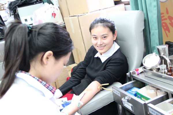 整个活动现场井然有序,这很大程度上得益于现场工作人员和青年志愿者的辛勤努力。服务台前的志愿者耐心地为前来献血的同学介绍流程,指引方向,并随时准备解答同学们在献血过程中遇到的各种问题;各分院、系工作人员在登记处忙着登记献血名单;礼品处的志愿者也忙着给献血的同学分发纪念品;更有志愿者在现场随时准备处理突发事件,个别同学出现晕血等小症状,他们会及时提供细心的照料。