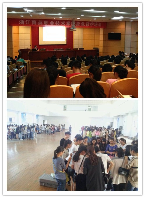 为了提高空中乘务学生在自然灾害和突发事件现场逃生避险和自救互救的应急能力,同时结合空乘人员岗位技能的要求,2013年10月11日,空中乘务专业13级全体新生开展了红十字会初级急救证培训和考证活动。