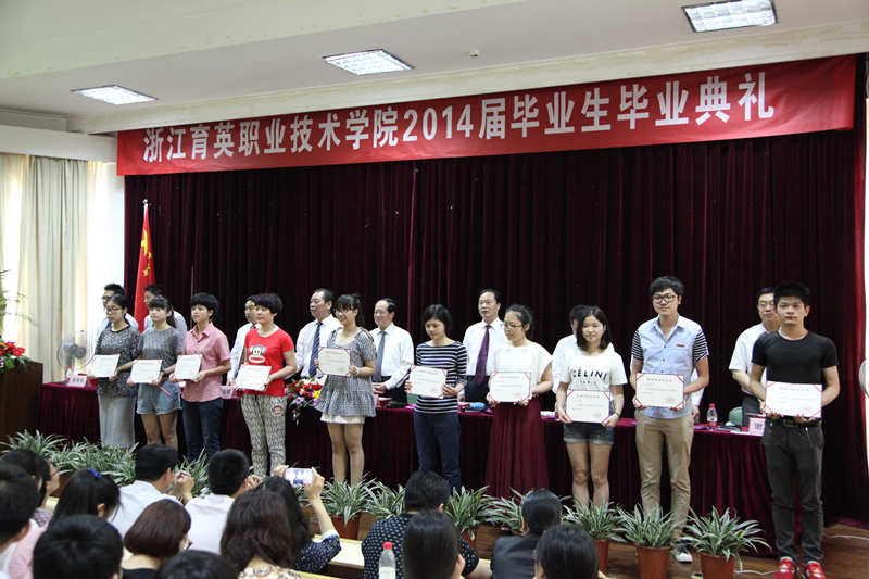 洪致平院长致辞,满怀激情和欣慰,列举了毕业生三年里取得的突出成绩。他说。2014届毕业生有187 人光荣地加入了中国共产党,62人获得省级优秀毕业生称号,145 人获得院级优秀毕业生称号,有3 人获得国家奖学金,49 人获得国家励志奖学金, 162 人获得学院一等奖学金,451人获得学院二等奖学金,933人获得学院三等奖学金,6人获得十佳大学生称号,157人获得育英之星称号,441人获得三好学生称号,473人获得优秀学生干部称号,900多人获得各种单项奖励。不仅如此,还参与了在浙江省乃至全国都极有影响的竞技项目,得到了社会的高度赞誉。