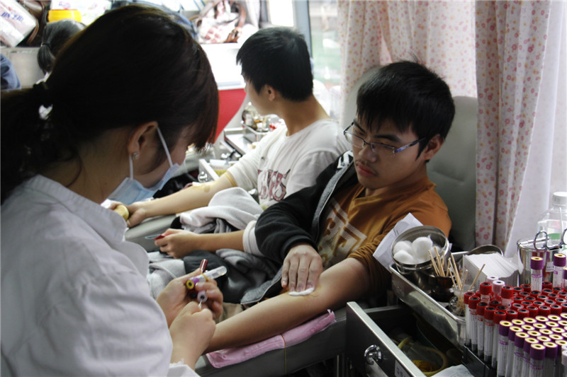 不少学生都献了400毫升,13计应A班杨达已经是第二次献血了,去年献血300毫升,今年又增加了100毫升,他说,“献血对自己的身体并没有什么不良影响,更重要的是自己的鲜血能够延续和挽救他人的生命,内心里感觉还是挺神圣的。”
