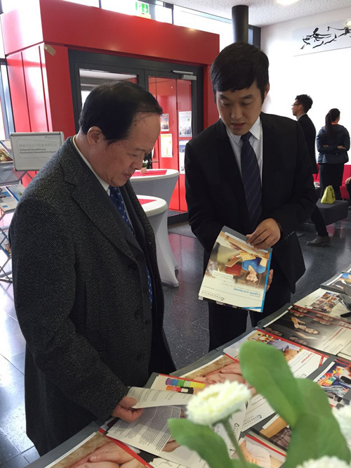 考察活动中,洪致平院长听取了巴伐利亚经济应用科技大学校长拉斯福尔曼教授关于巴伐利亚洲经济教育体系介绍以及国际部总监施特凡汉普先生就德国私立高校成功运行的经验与要求的讲座。