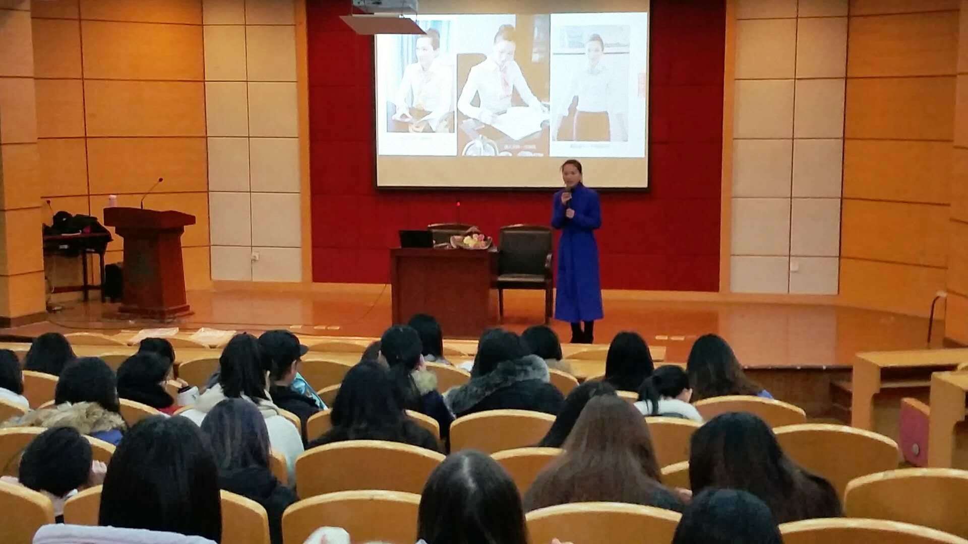 第三届“万事利”商贸文化(创业)节如火如荼的进行中。12月25日下午,受育英商贸分院邀请,万事利的美丽大使周焱经理给营销和国贸专业大二的女生做了一场别开生面的美丽大讲堂活动。