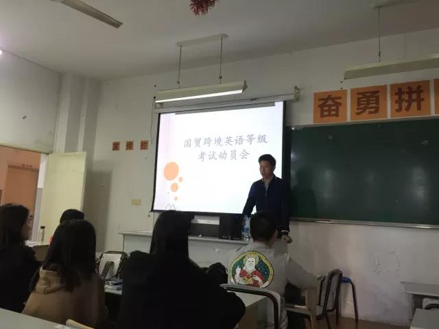 2017年10月25日中午,国际经济与贸易专业、跨境电商班英语等级考试动员会在3309教室举行,出席本次会议的有商务贸易分院院长欧阳驹老师,党总支书记、副院长王贤军老师,副院长陈贤平老师,国贸教研室主任傅祝屏老师,国贸专业英语老师、学业导师、班主任、英语课代表等。会议由国贸教研室傅祝屏老师主持。