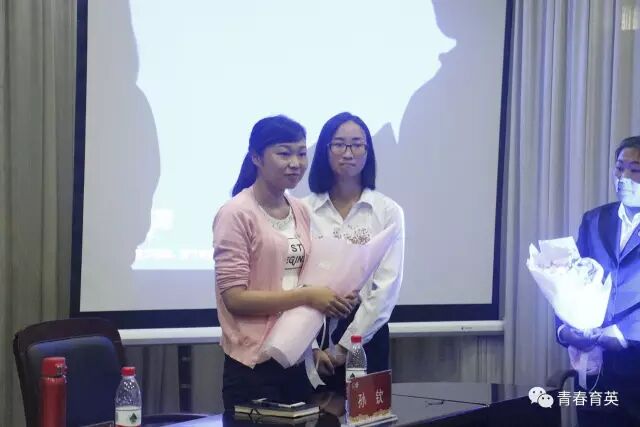 会议到此并未结束,在第十七届学生会主席朱倩的主持下,第九届团委办公室主任严佳璐、第十届团委副书记邱季慧、第十八届学生会主席朱梦怡给三位老师送上了鲜花,每一束花的寓意都代表着他们对三位老师浓浓的爱意和满满的敬佩。议到此并未结束,在前学生会主席朱倩的主持下,前办公室主任严佳璐、团委副书记邱季慧、学生会主席朱梦怡给三位老师送上了鲜花,每一束花的寓意都代表着他们对三位老师浓浓的爱意和满满的敬佩。
