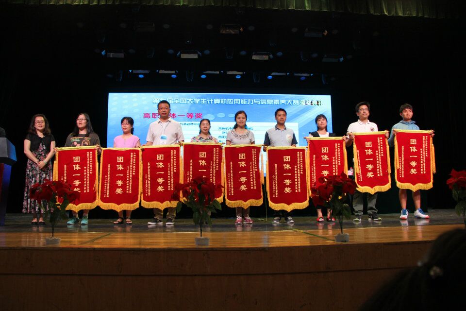 在生机盎然的初夏时节,在繁荣昌盛的首都北京,有全国高等院校计算机基础教育研究会、全国高等学校计算机教育研究会主办的“第七届全国大学生计算机应用能力与信息素养大赛”全国总决赛于2017年5月21日在中央民族大学落下帷幕,。本届大赛共有202个院校代表队,总计15000名学生参加,最后进入总决赛的院校代表队有165个,参赛选手数为561人,指导教师157人。大赛先经过院校赛,成绩合格给予GLAD认证机构颁发的认证证书,浙江育英职业技术学院在信息技术领导的关怀下、老师们的积极参与下,于4月27日进行校园选拔赛,初赛共有93名同学参加、92名同学取得了GLAD公司颁发的认证证书,其中有三位同学脱颖而出(15计B朱宇栋、15信A钱耀华、16通信马匡俊)代表浙江育英职业技术学院参加全国总决赛,。我院有宋国顺老师领队,指导老师有宋国顺、易明升、章翮带领三位学生,参加2017年5月20日在中央民族大学进行总决赛,大赛分第一轮、第二轮,在上午的第一轮决赛中我院三名选手顺利过关全部进入第二轮(晋级名额50%),在下午的第二轮决赛中我院的三名同学不畏强敌、顽强拼搏、砥砺前行取得不俗成绩。颁奖典礼在庄严地中央名族大学大礼堂举行,出席大会的有著名教育专家清华大学谭浩强教授、高林教授、台湾师范大学戴建耘教授等,大赛设有各参赛项目参赛选手及指导老师特等奖、一等奖、二等奖、三等奖,同时评选院校优秀组织奖和突出贡献奖。我院取得了高职组团体一等奖,其中15计应B班朱宇栋同学取得了个人一等奖好成绩,15信A班钱耀华同学和16通信马匡俊同学分别获得了个人二等奖的好成绩,同时15计应B班朱宇栋同学和指导教师获得参加8月份在台湾举办的海峡两岸赛及两岸学术交流资格。