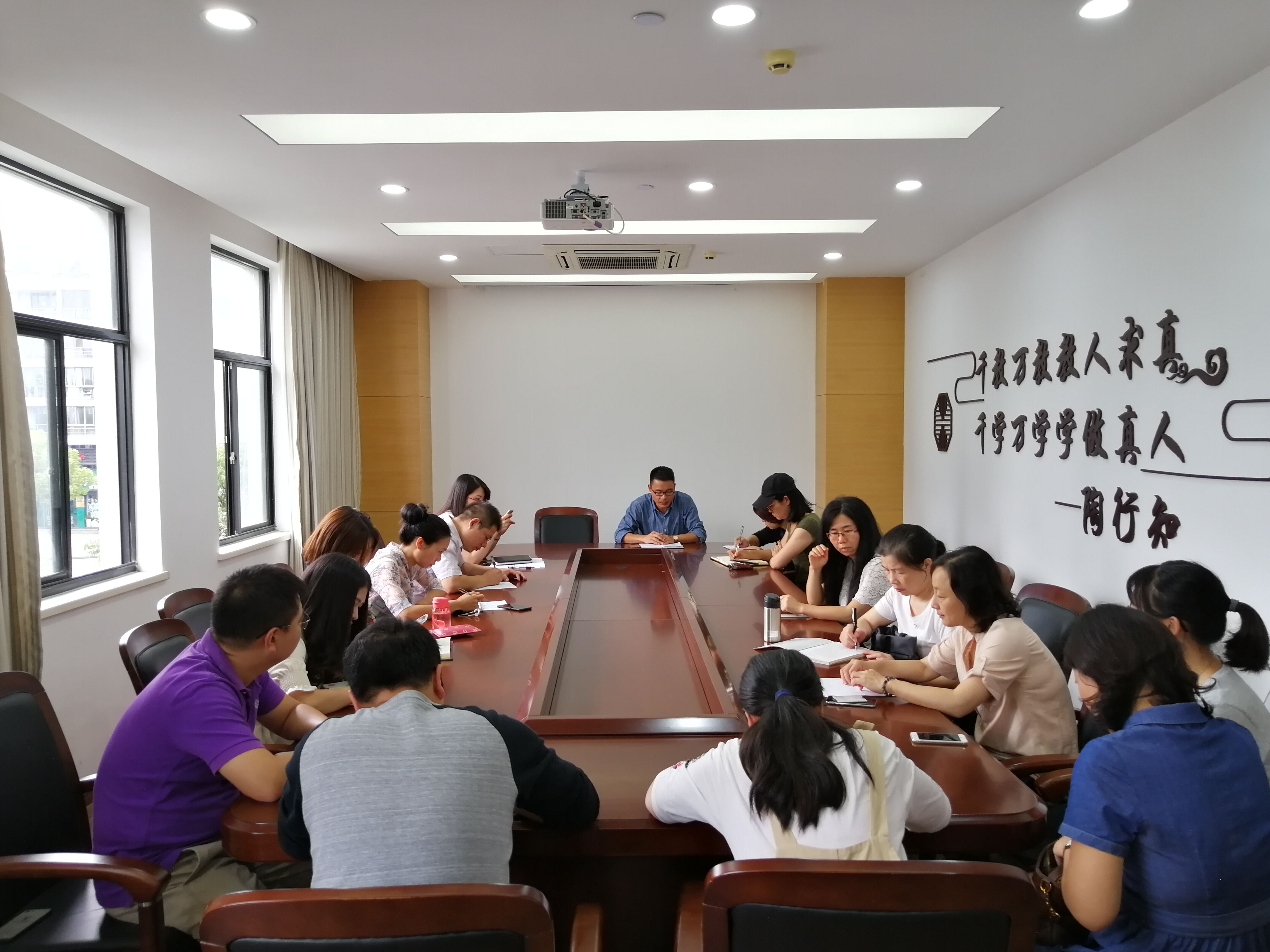 2018年9月27日12:40,商贸分院党总支在跨贸基地会议室召开分院全体教师党员会议,商贸分院全体教师党员出席会议,会议由分院党总支书记王贤军主持。
