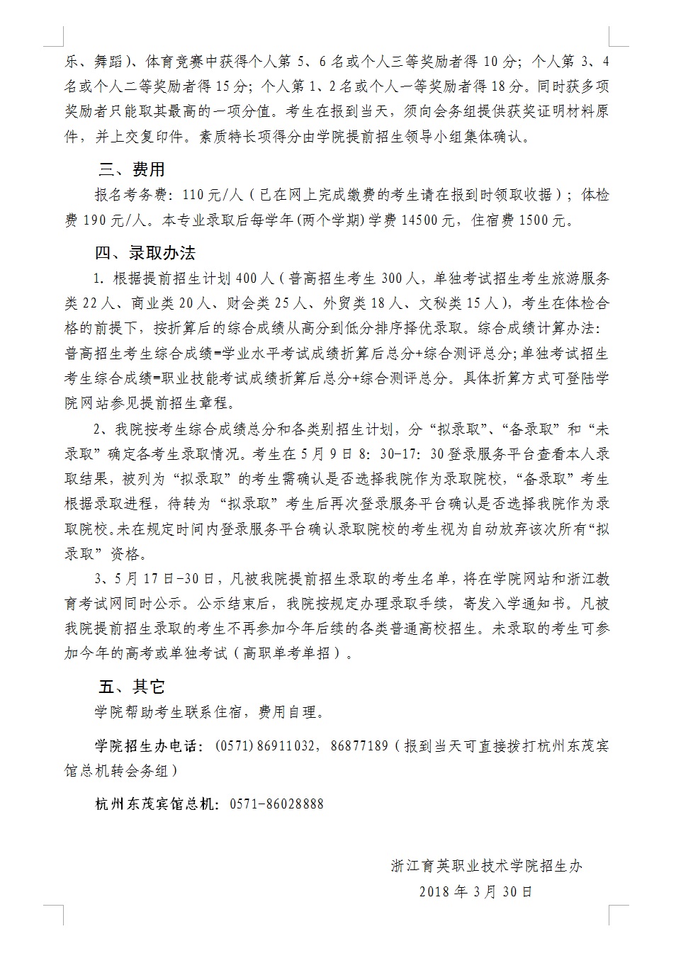 关于寄发2018年空中乘务专业提前招生综合测评通知的公告