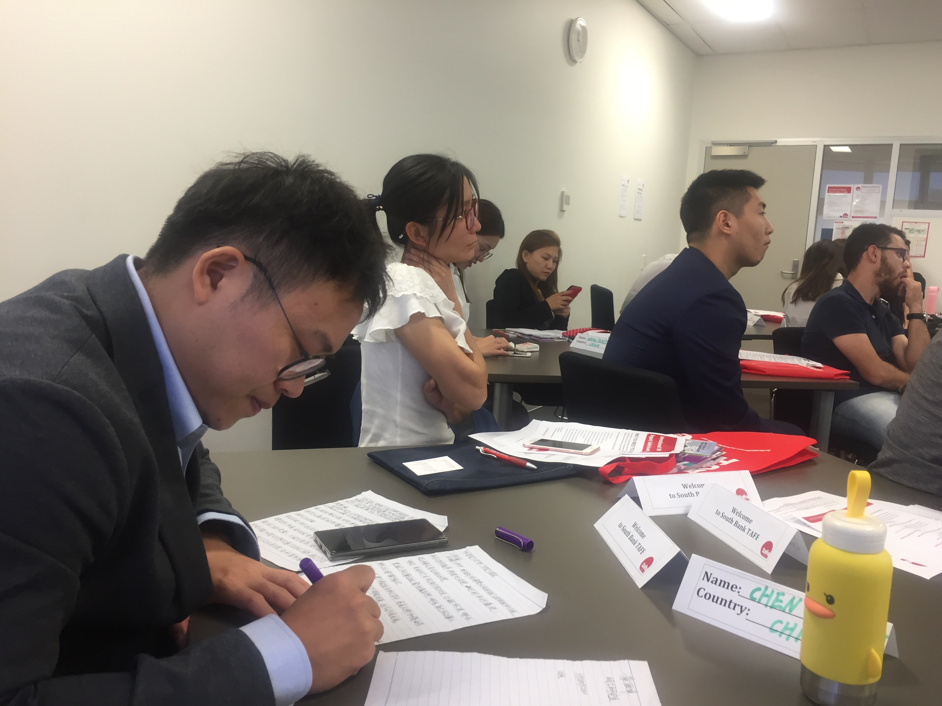 2018年11月26日在澳大利亚布里斯班当地时间8:00,全体师生参加TAFE学院语言学校的英语课堂,参加了包括其他各国留学生、语言培训生在内的语言测试(level placement test),测试的内容包括语法、词汇、阅读和写作以及单独口语访谈,考试时间长达两个小时(8:30-10:30)。全体师生都能够完成良好,并按时交卷,大多数师生能提前交卷。测试之后,师生共同参加了此次TAFE学院语言学校的Nook 老师的General English课堂。大家对昆士兰TAFE学院学生的各项制度和规则(the Queensland Student Rules and Policies)有了总体的了解。TAFE学院除了对学生的出勤(attendance)、请病假(sick leave)、打工(part-time jobs)等方面对学生的要求非常严格之外,还为学生提供了包括财务、人身安全、学习、健康、健身、娱乐休闲等方面的各种便利和帮助。在场的师生深感TAFE学院教学制度的严谨和TAFE教师的敬业。