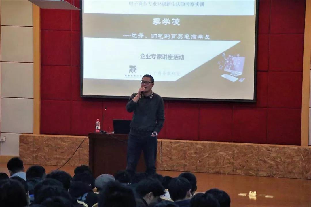 2018年12月13日14:00,电商大讲堂暨新生认知考察实训讲座在三楼学术报告厅隆重举行。本次讲座特邀优秀校友李学凌——杭州首展科技有限公司市场总监(育英学院电子商务专业09届毕业生,曾担任阿里巴巴有限公司温州区域经理)。与会人员有:商贸分院书记王贤军老师、电商教研室全体教师,18电商专业300多名学生。