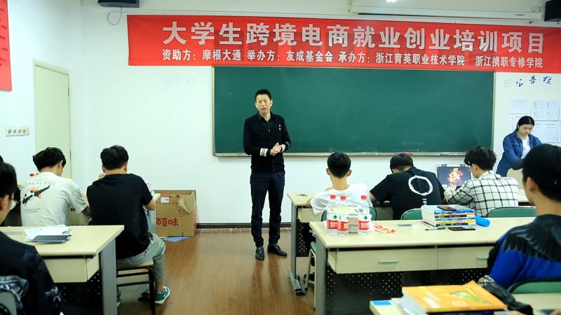 2019年5月13日上午9:00,商贸分院17级跨境电商班“友成大学生跨境电商就业创业实战课程”在3212正式开班。该项目是由摩根大通资助,友成企业家扶贫基金会举办,我院与浙江携职专修学院共同承办的一个公益项目。项目主要是帮助大中专院校学生,开展跨境电商就业技能培训,提升实际应用能力。并通过跨境电商企业定向委培、跨境电商企业定向推荐、跨境电商企业招聘会、跨境电商创业资源对接等形式,帮助大学生更好的就业创业。
