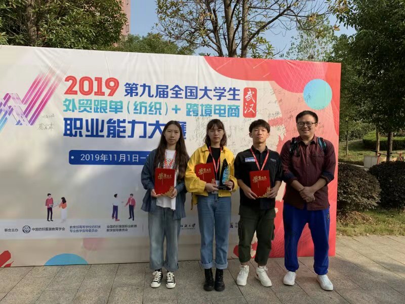 2019年11月1日-11月3日,由教育部高等学校纺织类专业教学指导委员会和中国纺织服装教育学会共同主办的第九届全国大学生外贸跟单(纺织)+跨境电商职业能力大赛在武汉举行。来自全国47支代表队,200多名参赛选手,经过激烈角逐,我院18国贸C班朱小慧获高职组个人二等奖、18国贸B班周俗铭获个人三等奖,团队获三等奖。