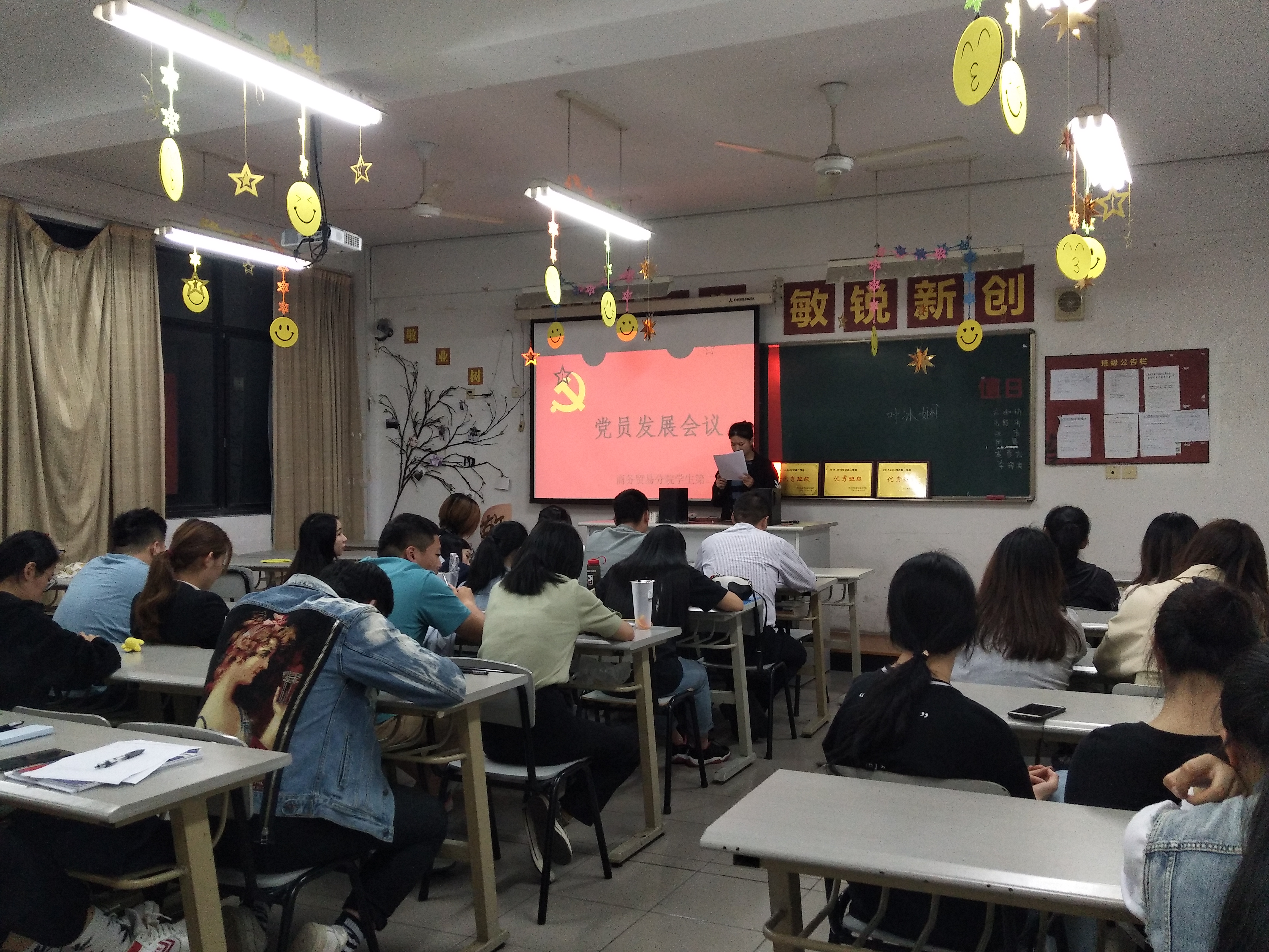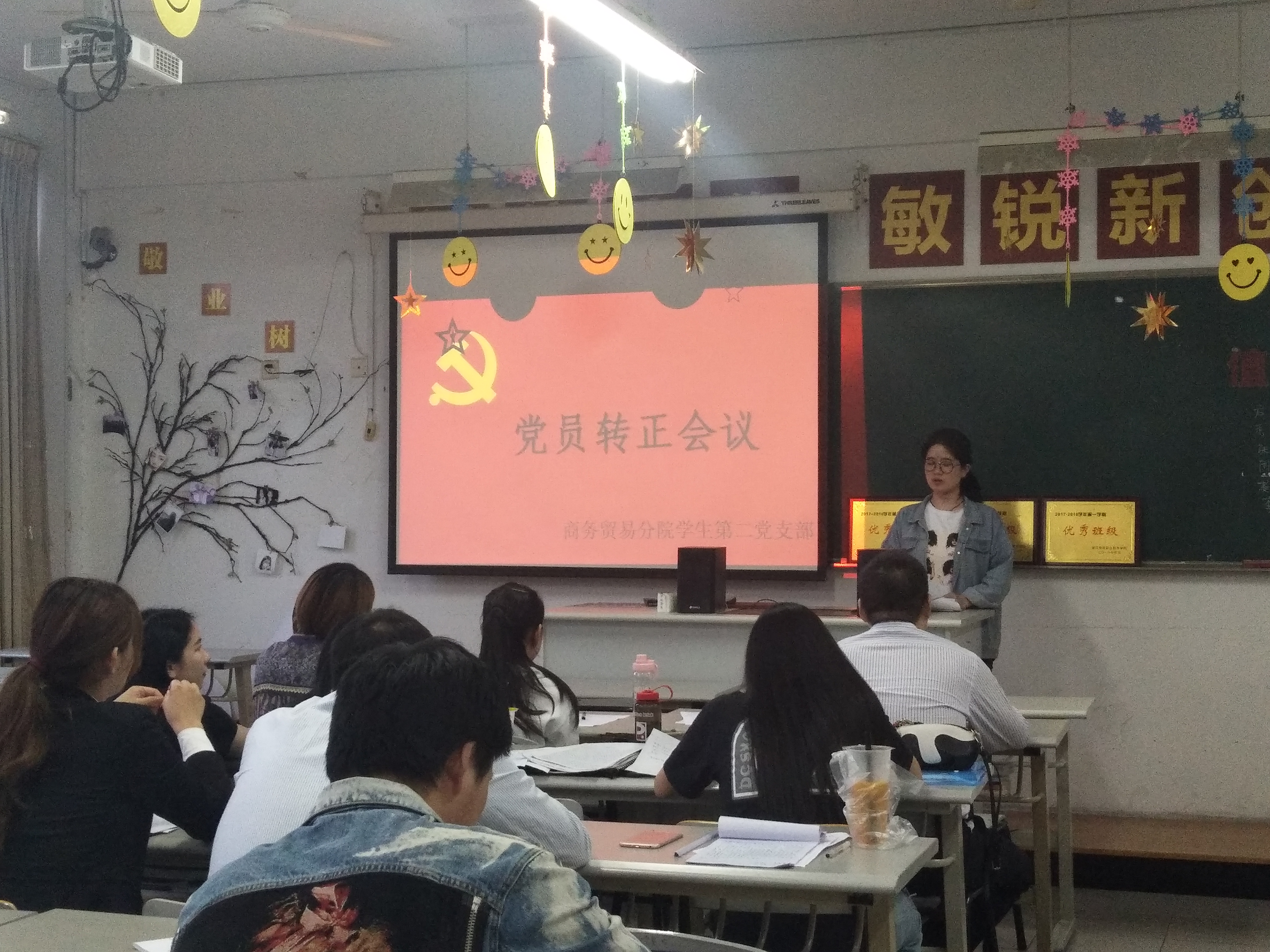 2019年5月14日下午18:00分,浙江育英职业技术学院商务贸易分院学生第二党支部在3321教室举行发展及转正会议。