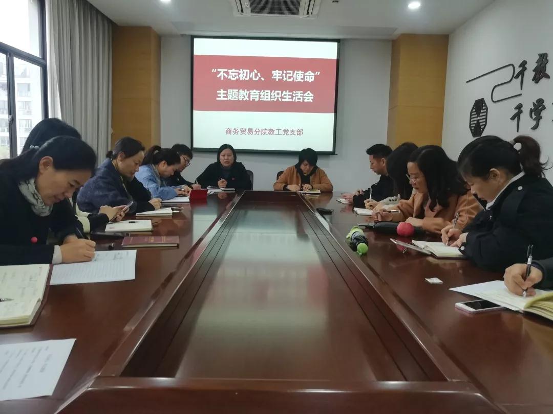 根据学院党委关于开好“不忘初心、牢记使命”主题教育专题组织生活会的通知要求,商务贸易分院教工党支部和学生第一、第二党支部于11月25日分别召开“不忘初心、牢记使命”主题教育专题组织生活会。