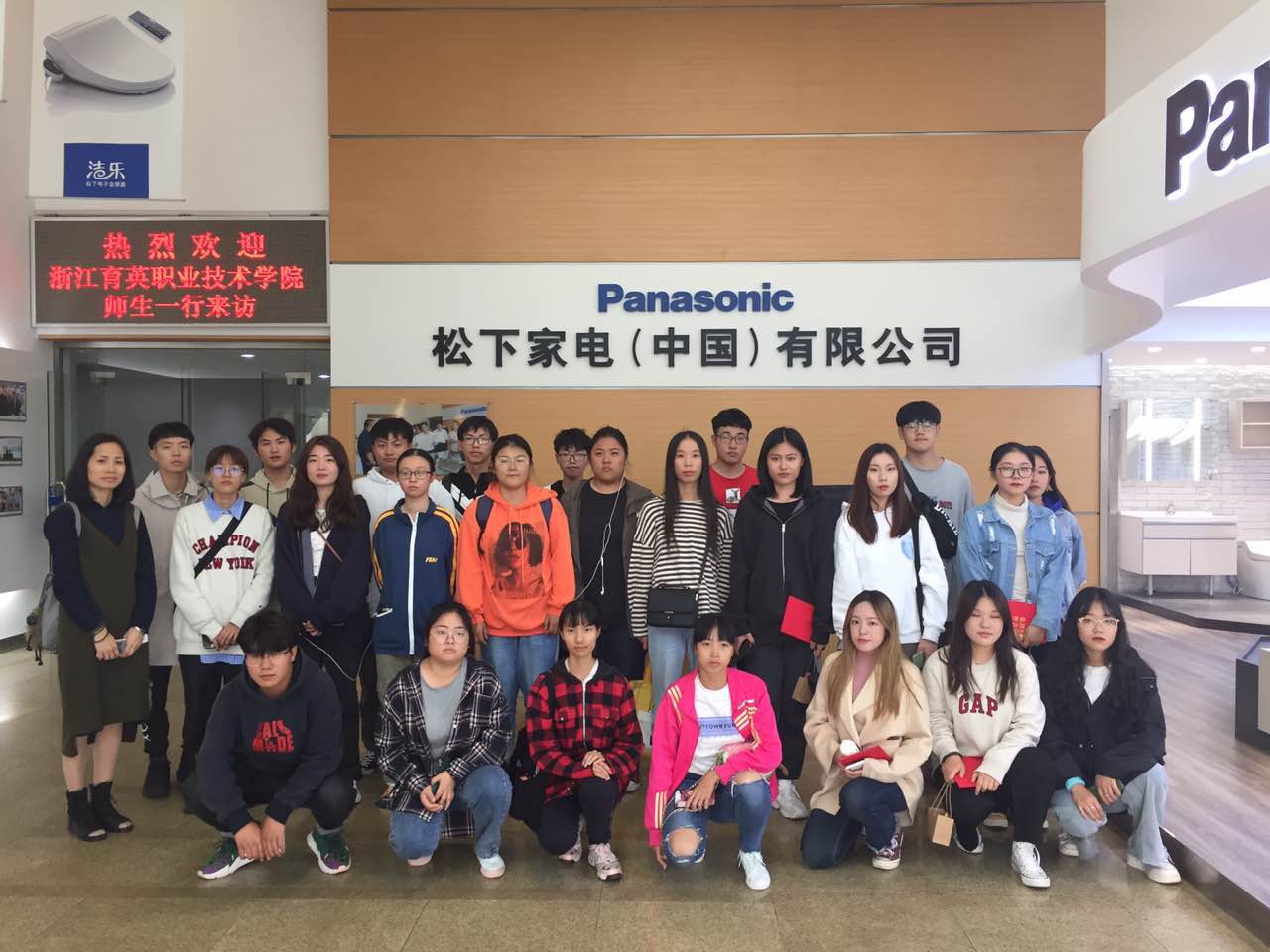 实训第一站松下电化住宅设备机器(杭州)有限公司,同学们了解了世界500强企业的发展历史,参观了井然有序的生产车间,安静优雅的办公室区域。体会了日企文化的氛围。