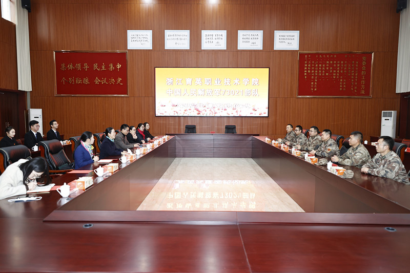 谢鑫介绍了我院的基本情况以及与部队的合作历史,并感谢73021这支英雄的部队一直以来对学院学生军事训练、国防教育、爱国主义教育、红色主题教育等学习教育活动的支持。她说,军民共建有助于实现地方高校与部队资源共享、共促双方建设发展。学院将继承和发扬“军爱民、民爱军,军民团结一家亲”的光荣传统,巩固发展和谐的军民关系,共同续写双拥新篇章。签约只是一个形式,更重要的是共建的内容和内涵。她希望通过签订共建协议,建立共建长效机制,推动共建活动有序开展,实现共学、共育、共享、共赢。
