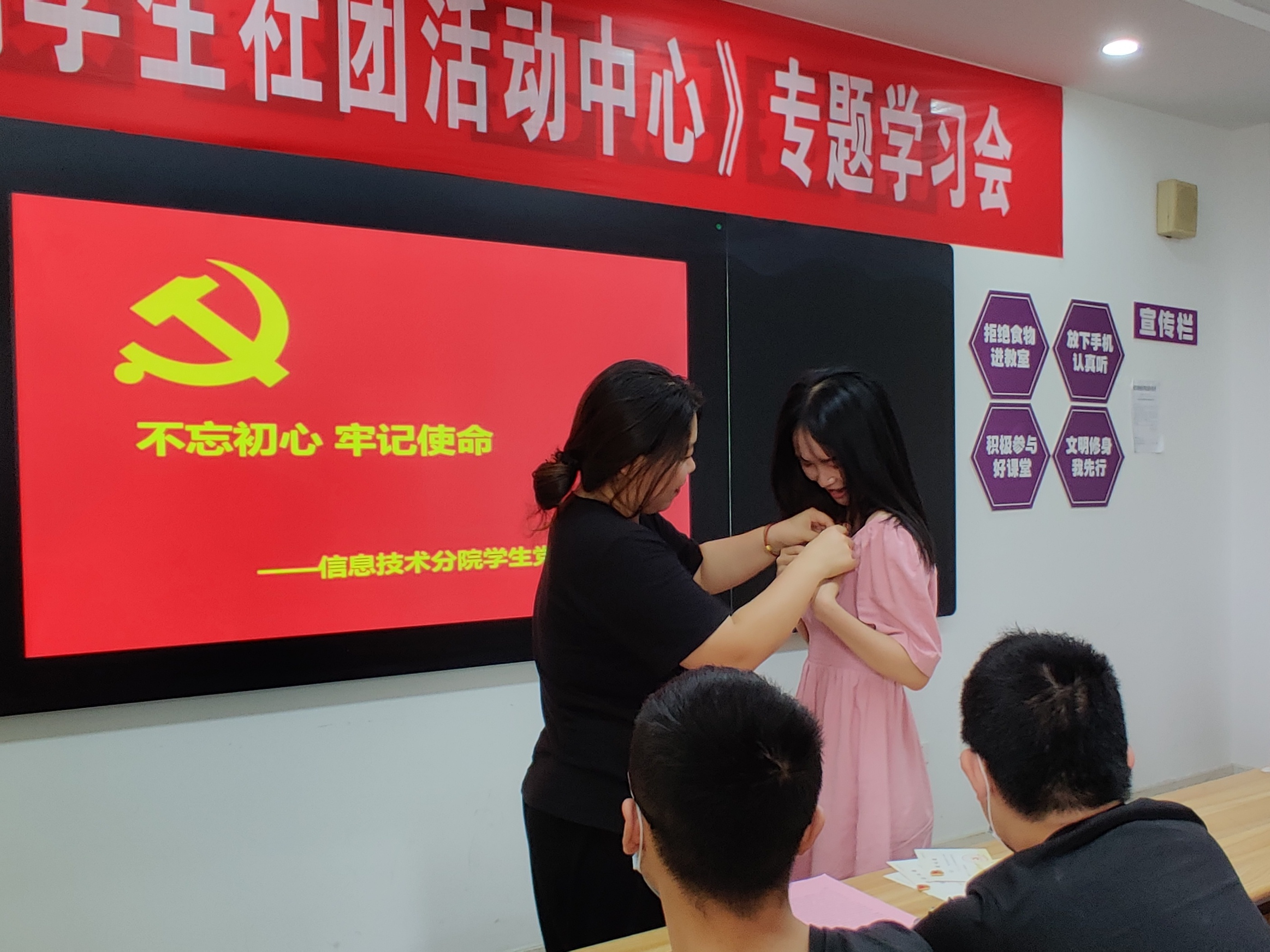 议程一:佩戴党徽,重温入党誓词,增加仪式感和使命感。