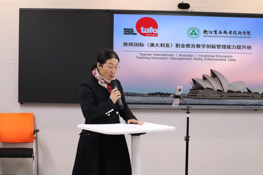 她说商贸分院一直努力推进与TAFE Queensland更深层次的合作,双方商谈成立“中澳国际商务研究院”和“澳洲海外实训基地”等合作,都是很好的探索与尝试。希望这次利用信息技术手段更好的拓展国际职教师资培训和中澳人文交流,此次职业教育教学创新管理能力培训项目将助力职教师资队伍建设,以此拓宽和带动新一轮教师培养的方式、途径,助力教师成长,助推学院职业教育发展。最后希望以此次培训为契机,积极创新互联网中澳合作交流的新模式,助推双方在专业共建、人才共培、合作发展等方面的新篇章!