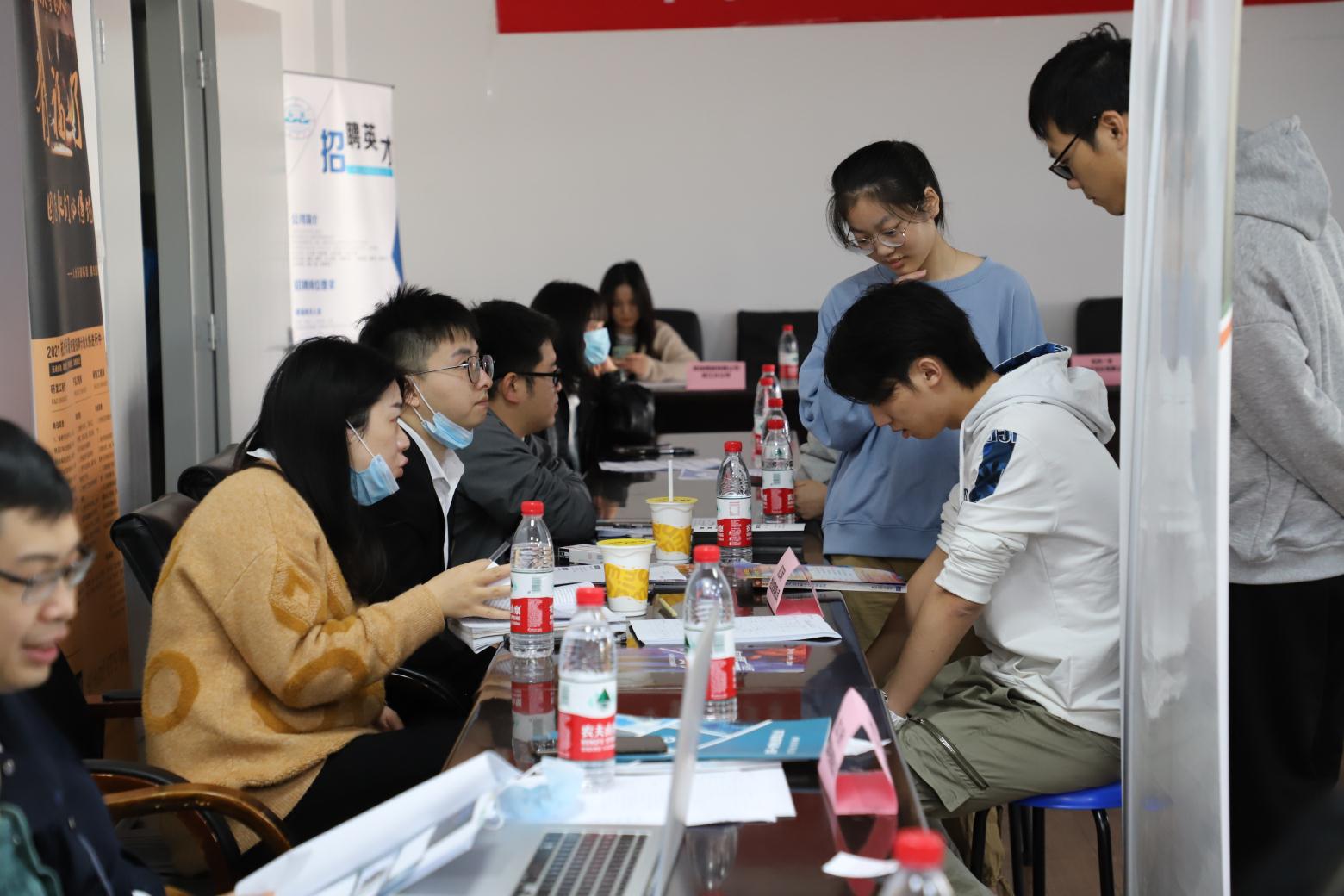 各企业提供的就业岗位数近308个,有159位学生递交简历,目前有20余人顺利通过各企业单位的初试。