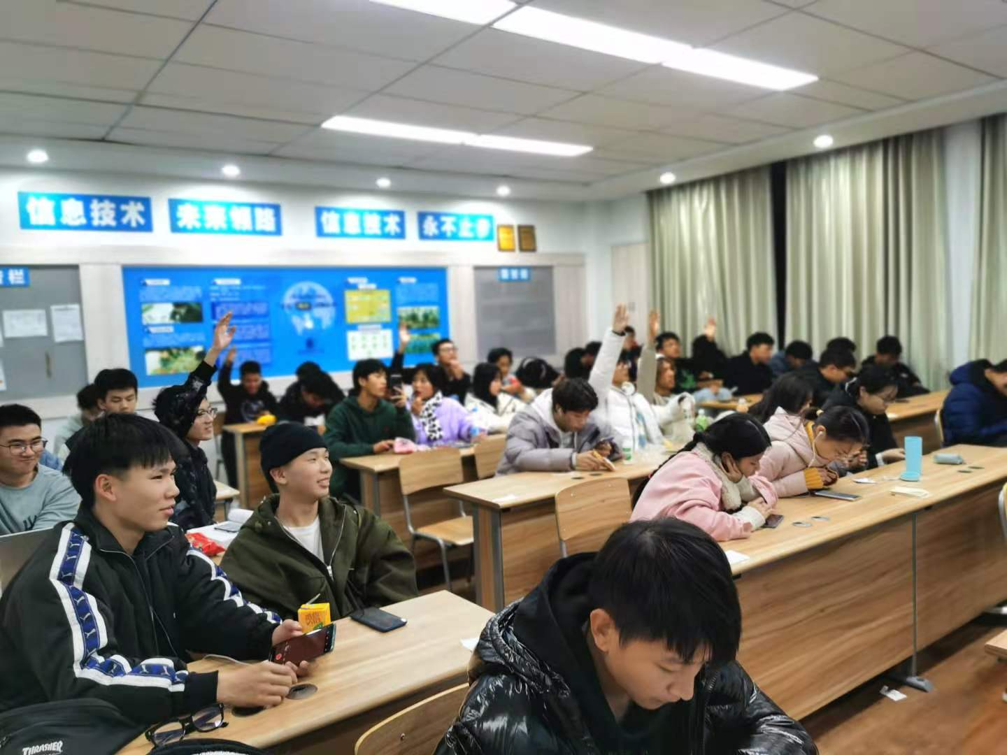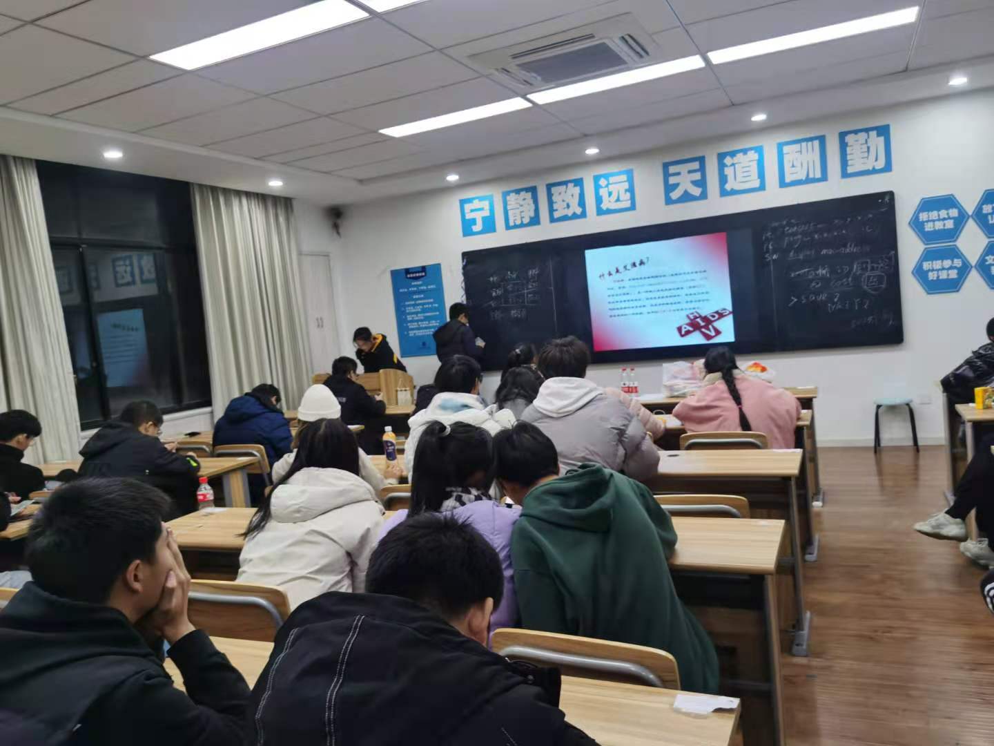 为了提高同学们的抗艾防艾意识,2020年12月13日星期日晚上七点,20计应B班的宣传委员张梦笑同学于1510教室开展了“预防艾滋病”的主题班会。