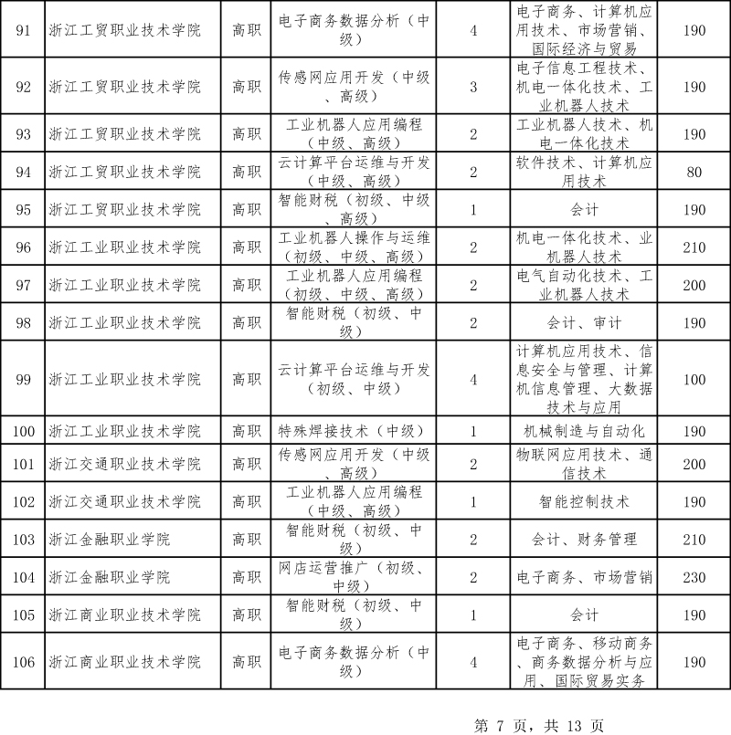 浙江省第二批1+X证书制度试点院校情况汇总表(含试点人数)