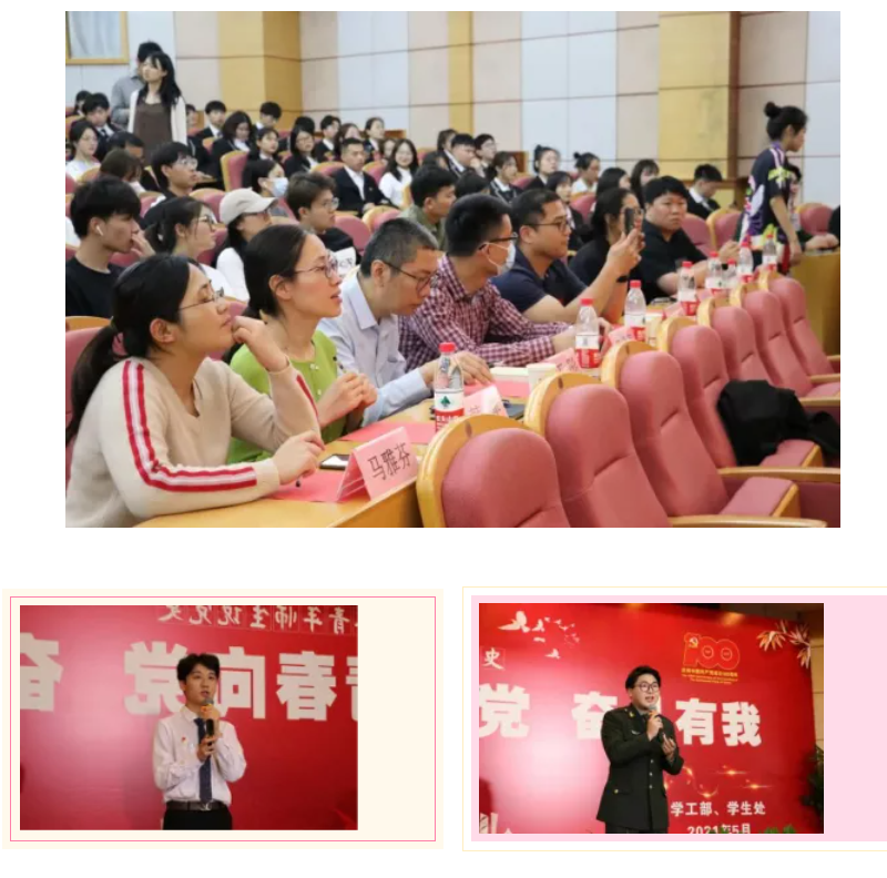 2021年5月19日,学院举行辅导员说党史活动,回顾中国共产党的百年沧桑、伟大历史,引导广大团员青年“学党史、强信念、跟党走”,进一步增强“四个意识”、坚定“四个自信”、做到“两个维护”。27位辅导员们有的唱响生命之歌——《义勇军进行曲》;有的品读《红色家书》,感受红色信仰;还有的介绍国家英雄人物王伟等,他们多角度讲述了对党史的深刻理解,引起台下听众的共鸣。