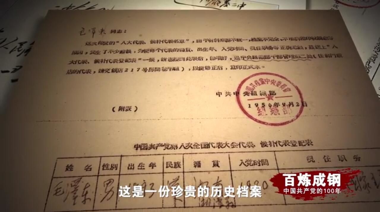 这是一份珍贵的历史档案。1956年,毛泽东在中国共产党第八次全国代表大会登记证的入党时间一栏,亲自填写了1920年。众所周知,中国共产党成立的时间是1921年7月,为何毛泽东在1920年就已经入党了呢?