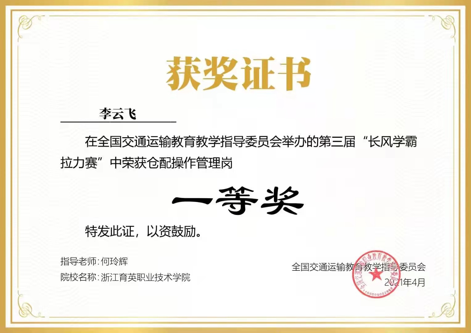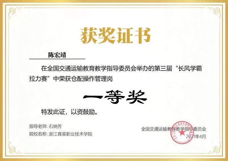 虽然当时还是在假期,接到比赛通知,物流管理专业积极动员师生报名参赛,两名指导教师(何玲辉、石纳芳)指导物流管理专业学生共参加了34项次比赛,经过一个月激烈角逐,我专业物流学生共得到21项一等奖,3项二等奖。两名指导教师均获得优秀指导教师奖。