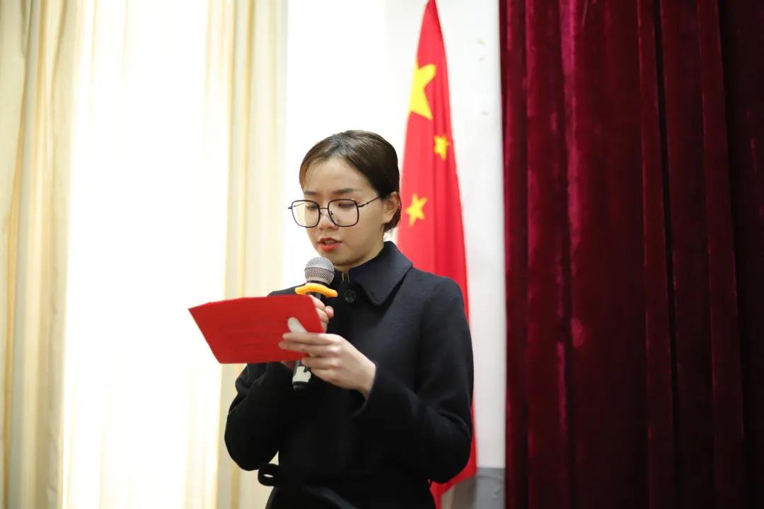 院学生会执行主席、杭州市优秀团员、学生干部代表徐晨阳同学讲到“走进校门的是大学生,培养出来的是职业人”,从大学生到职业人,承载着“厚德载物、自强不息”厚重的底蕴。而作为学生干部的我们,要坚守初心,弘扬育英精神。她鼓励同学们在校期间积极参加学校的各项活动。她说“请记得故事开始的那个地方,心中有信仰,脚下才会有力量”。敢于尝试,在坚守中收获成功,坚信每一个育英人会越努力越幸福,在平凡中的坚守,在坚守中收获成长。相信在做的各位,一定会响应徐晨阳同学的号召,凝心聚力,牢记使命,做中国共产党的后备军,做新时代发展的主力军。