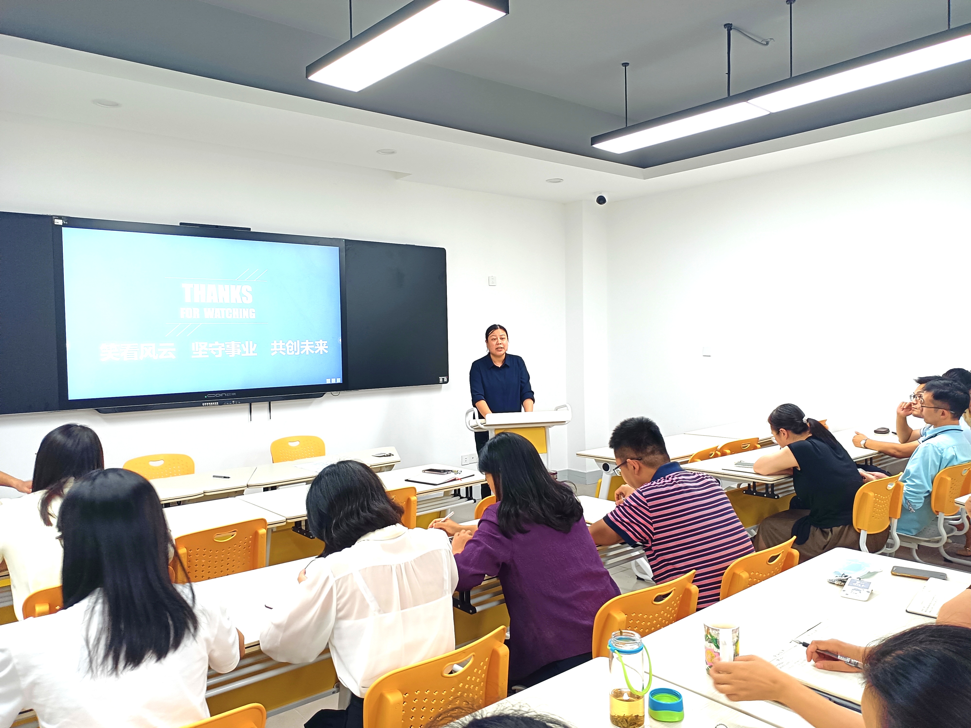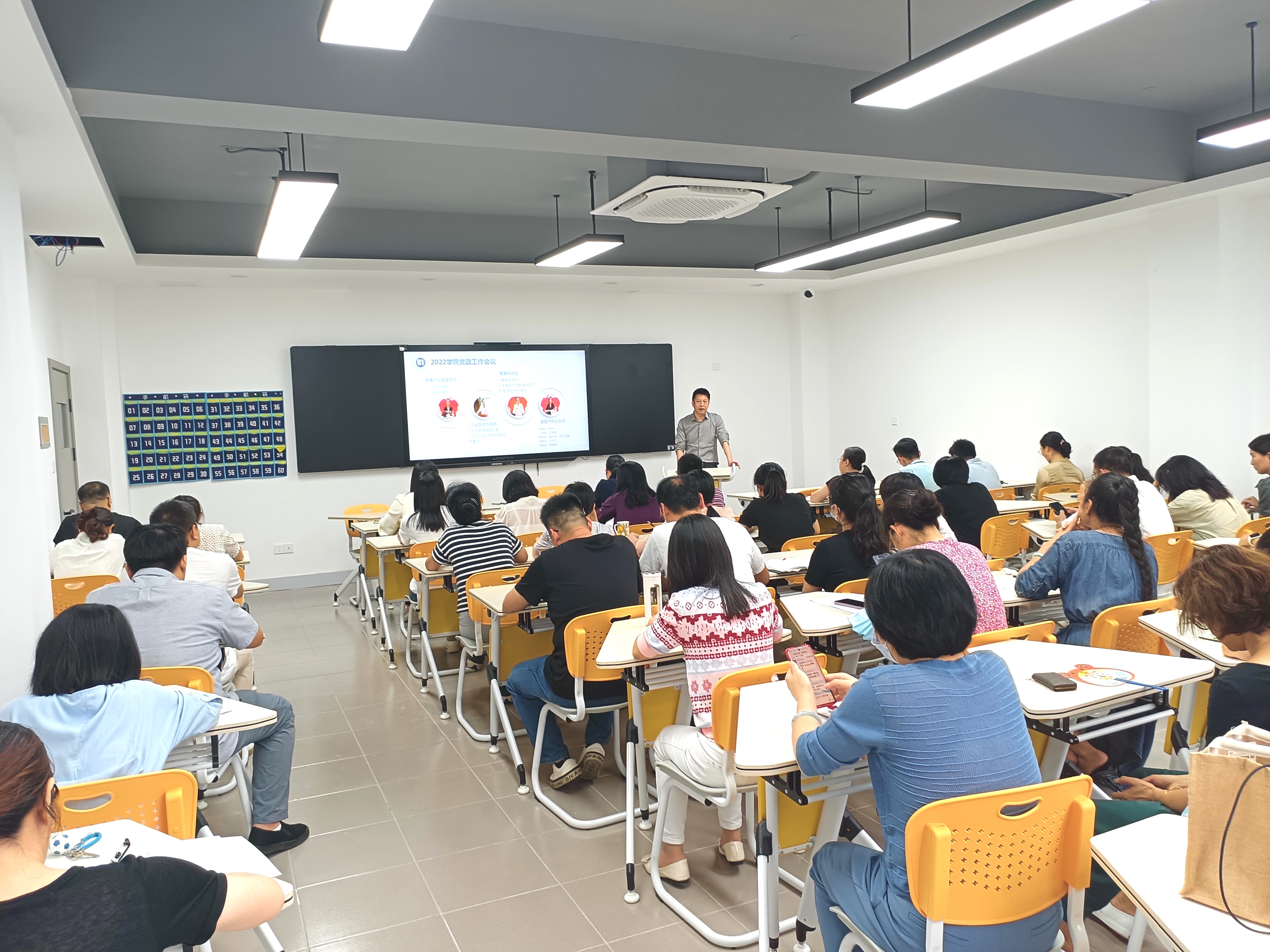 2022年9月3日下午13:30,数字商贸学院在3309智慧教室召开了2022-2023学年新学期第一次全体教师大会。学院党总支书记、院长欧阳驹老师,党总支副书记、副院长姜蕾老师,副院长陈贤平老师及全体教师参加,会议由王成伟老师主持。