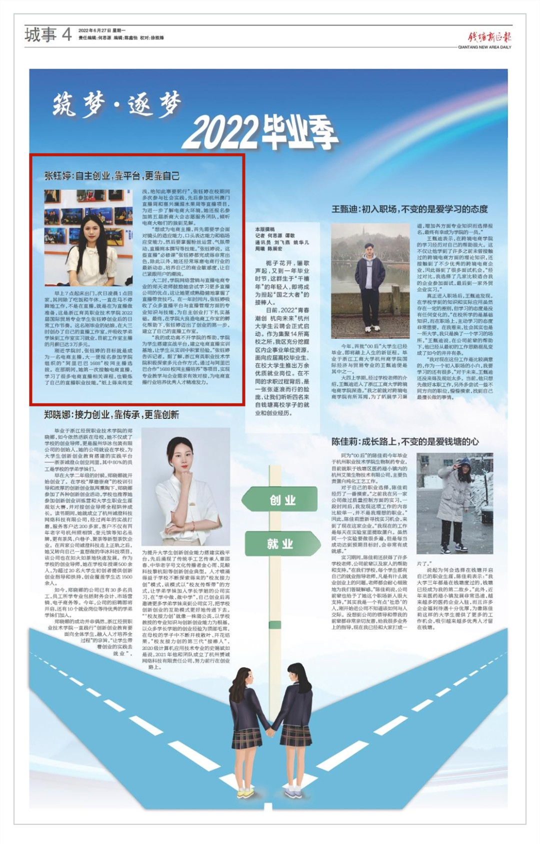 【钱塘新区报】张钰婷:自主创业,靠平台,更靠自己