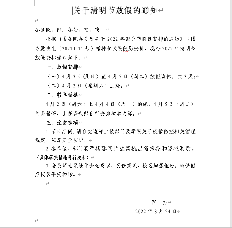 关于清明节放假的通知