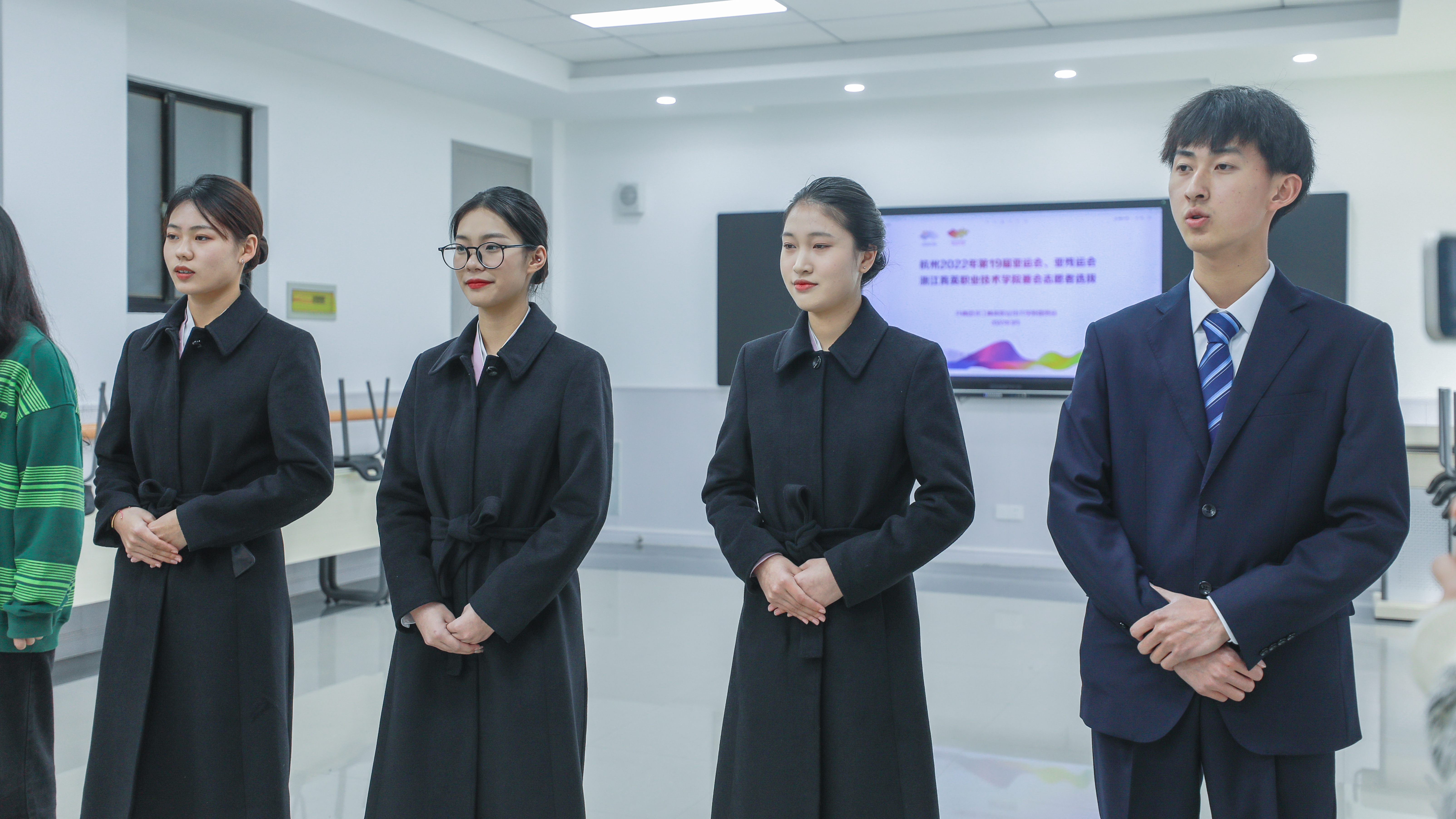 “此次报名的很多同学都有大型赛会志愿者服务经验,有的参加过乌镇互联网大会,有的刚参加过省‘两会’的志愿服务工作。”学院团委副书记孙钦说:“此次面试选拔,由学院团委牵头设置志愿者审核、面试等环节。在前期招募阶段,学院共有1794名学生报名,经过一轮筛选后,确定400余人参与面试环节,最终将择优选拔出61名赛会预录用志愿者,为亚运会开闭幕式提供志愿服务。”