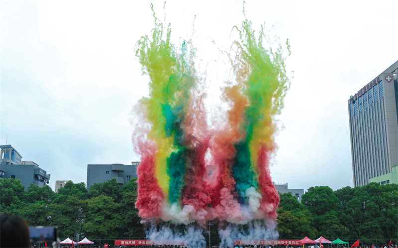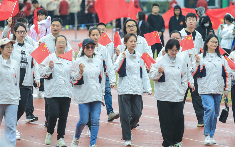 徐晓斌致开幕词。他说,生命在于运动,运动是保持身心健康和体魄强健的最佳方式。学校高度重视体育教学、训练和竞赛工作,建立了体育教学、训练、竞赛机制,认真落实《体育法》“每学年至少举办一次全校性的体育运动会”要求,每年举办综合运动会,包括上半年的球类比赛和下半年的田径比赛。本届运动会还专设“学生组体测素质项目”,推动学生体质有效提升。近年来,在全校师生共同努力下,学校群众体育运动蓬勃开展,学生体质健康测试合格率稳步提升。他希望全体参赛运动员团结协作,勇于奉献,顽强拼搏,不断提高竞技水平,同时崇尚体育道德,遵守竞赛规则,尊重裁判,尊重观众,胜不骄、败不馁,取得体育竞技比赛成绩和体育道德风尚双丰收;希望全体裁判员遵循“公平、公正、公开”原则,忠于职守、文明执法、严谨裁决,为运动会营造良好比赛氛围;希望各学院、各部门,精心组织、热情服务,确保各项比赛安全有序进行;希望更多师生积极参与体育运动,热爱体育运动,让体育运动成为大家健康、快乐、幸福生活的一部分。