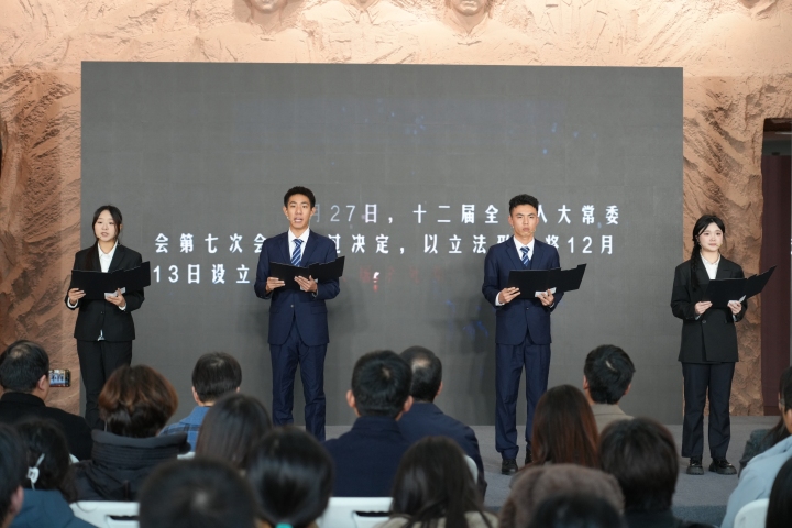 12月13日,第十个国家公祭日,“传承英烈精神 争做时代新人”文明实践主题活动在浙江省革命烈士纪念馆举行。我校马克思主义学院为此次活动选送了2首经典诵读,将“行走的思政课”开到了活动现场。