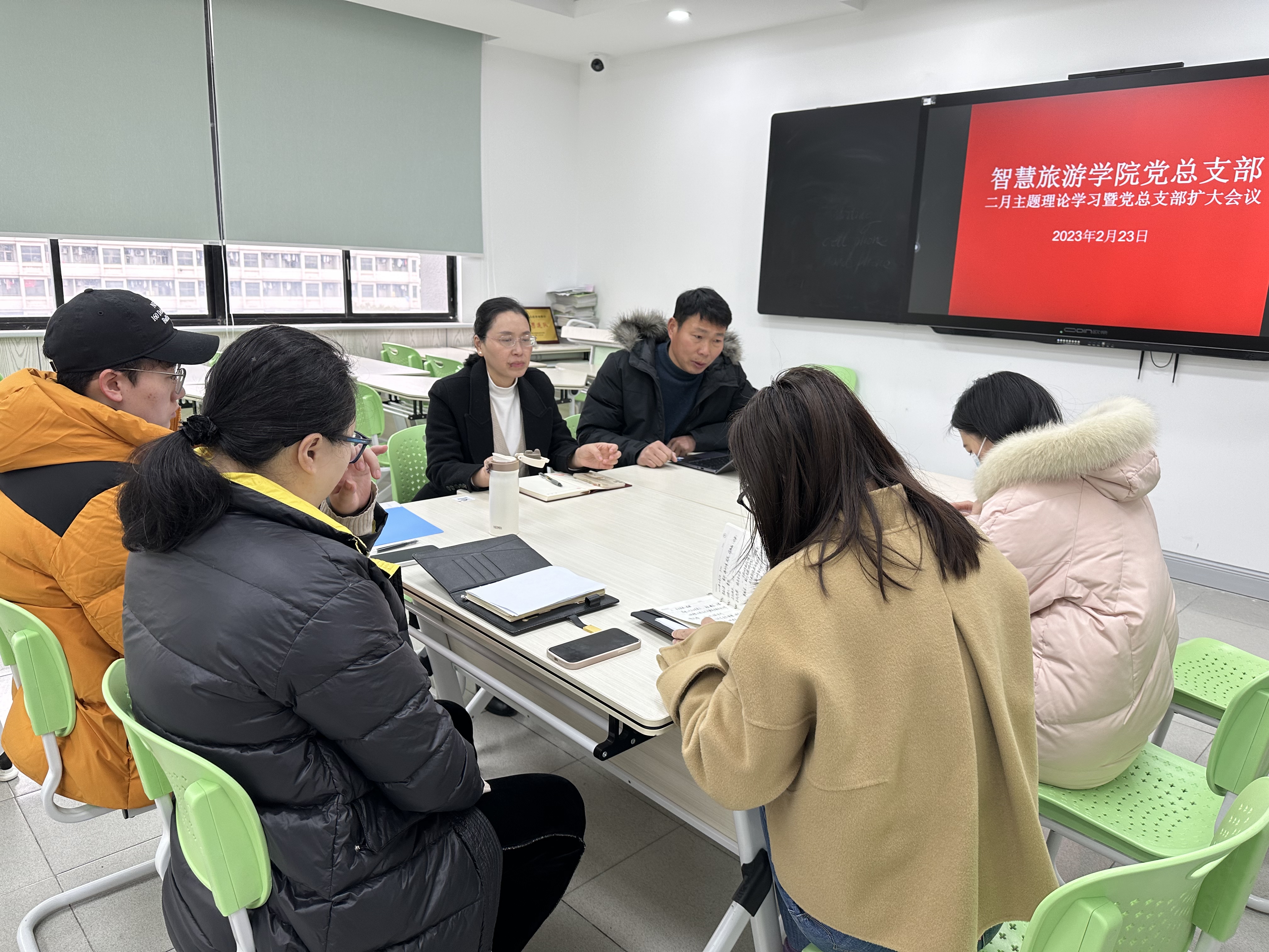 随后谢剑峰书记结合旅游学院党总支部实际进行了本学期党总支部各项工作的部署,根据《中共杭州市教育局委员会办公室关于召开2022年度基层党组织组织生活会和开展基层党组织、党员民主评议的通知》文件要求,做好开学初各支部的组织生活会及民主评议工作,做好2023年度杭州市教育系统优秀共产党员的推选工作,同时对本学期的支部委员补选、党员发展、47期党校结业和48期党校选拔等工作进行了详细布置,同时要求各党支部要在做好规范化工作的同时,加强支部特色工作的开展,在教学与党建工作融合、学生活动与红色领航工程的结合,以“在社区大舞台发挥党建活力”为引擎,强基固垒,做出学院党建工作特色。