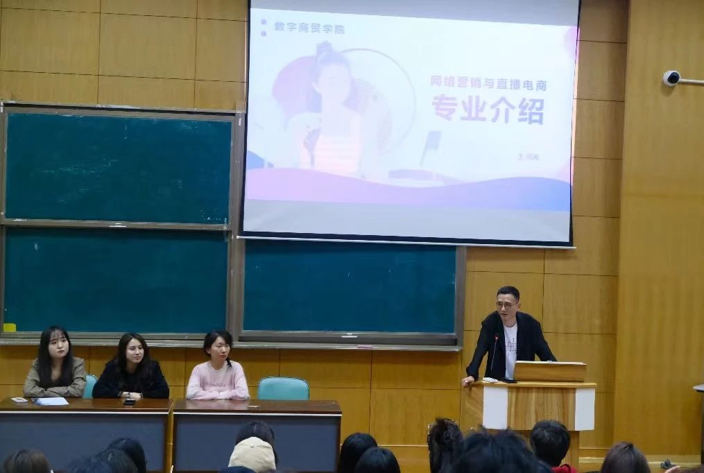 10月11日晚上,网络营销与直播电商专业新生见面会在3202阶梯教室举行,2023级新生与专业老师们共聚一堂,共同探讨直播电商行业的前景与发展方向。专业负责人郑天老师向新生们介绍了专业的课程设置、实践教学环节以及就业前景等信息,强调了直播电商行业的发展趋势以及电商平台对于高素质直播电商人才的迫切需求。毛飞、夏美馨和闫昱利三位专业老师分别结合自己主讲的课程以及负责的实践项目,鼓励同学们尽早确立专业学习目标,积极参与实训项目,努力提高综合素养。