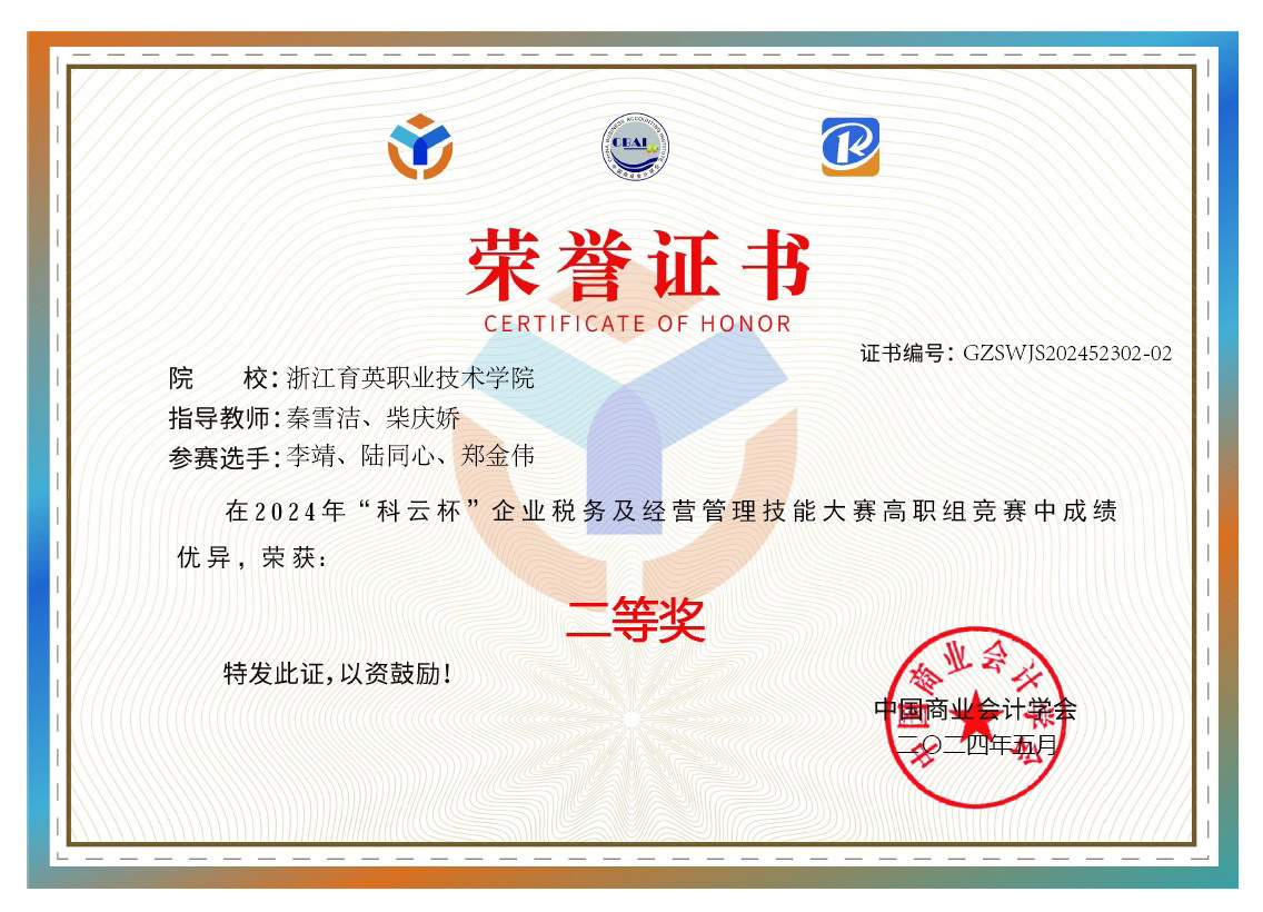 本次比赛大数据与会计专业高度重视,全体会计专任教师共同参与指导。经过近两个月的赛前准备,5月7日举行了校内选拔赛,我校大数据与会计专业选派由22级会计A班郑金伟、李靖、陆同心,22级会计B班仇艺棉、金灵滨、陈晓琳6人组成的两支代表队代表学校参加本次大赛。经过紧锣密鼓的集训、师生的辛苦付出,最终学生们凭借扎实的专业知识和精湛的办税业务处理技能,在本次比赛中实现成绩突破。我校两支代表队分别获得团体二等奖和三等奖的优异成绩。