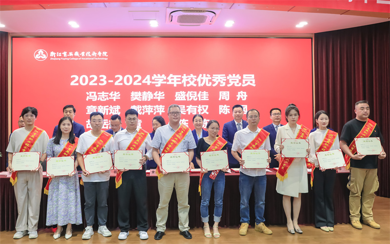 邬佳宣读表彰决定。2024年度浙江省高校思政微课大赛获奖者及集体代表,2023年度浙江献血总量标杆高校、千人献血率标杆高校获奖集体代表,2023年度浙江省志愿服务工作突出贡献获奖者,中共杭州市委教育工作委员会2023年度教育系统“两优一先”获奖者和2024年党员教育电视片(微党课)优秀作品获奖者及集体代表,学校2023-2024学年先进基层党组织、优秀党员、优秀党务工作者和先进党章学习小组获奖者及集体代表受到表彰。