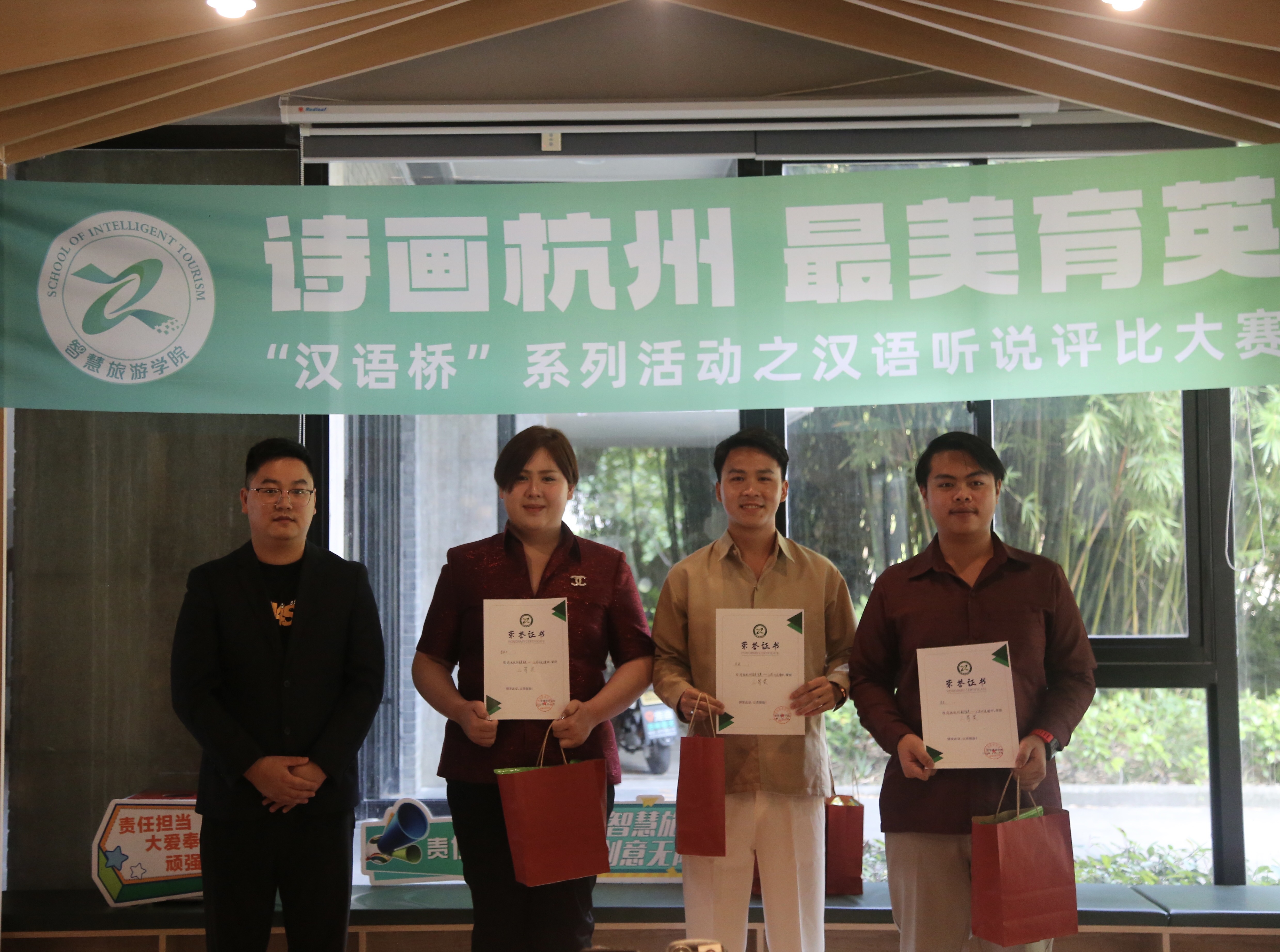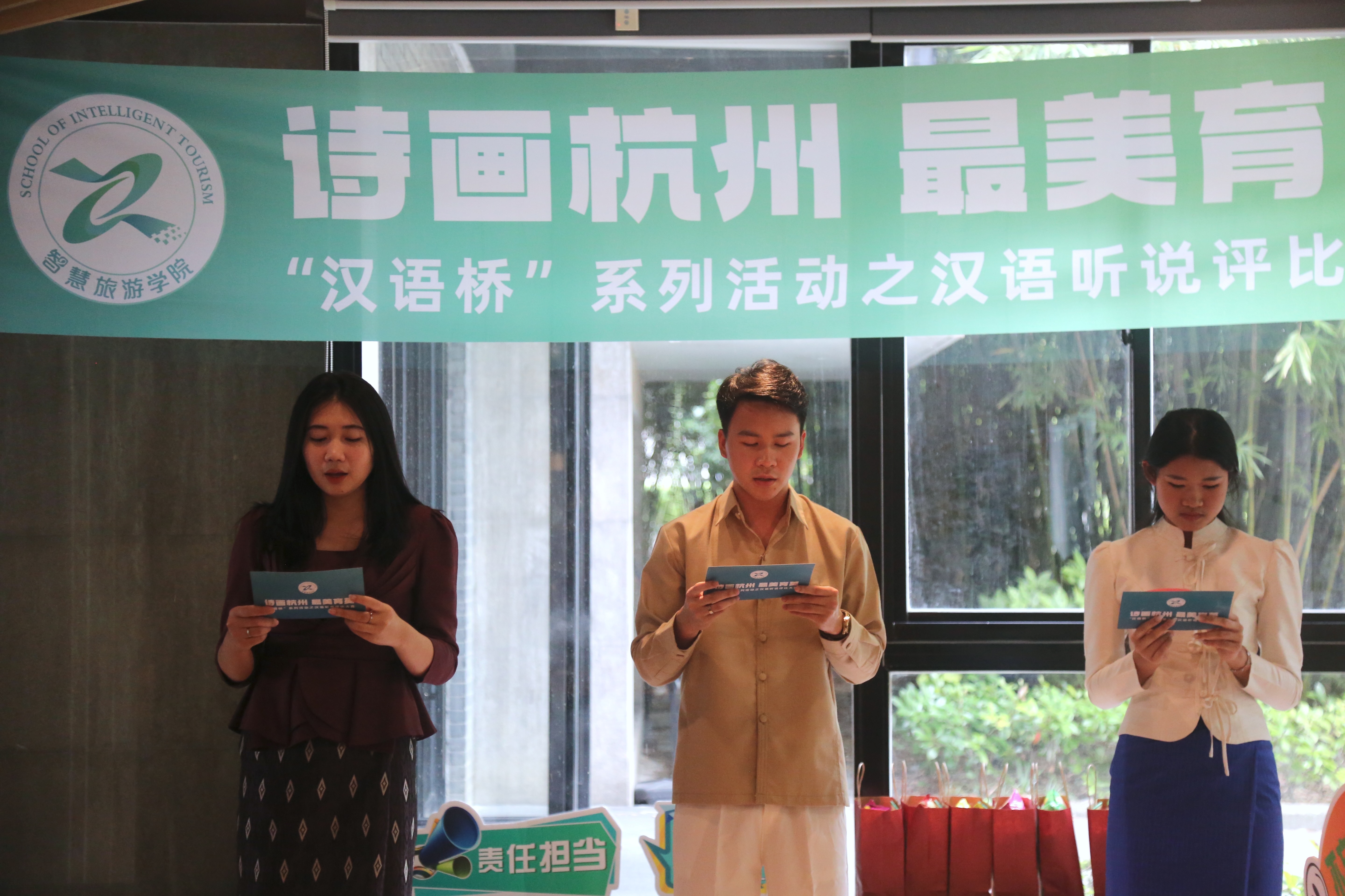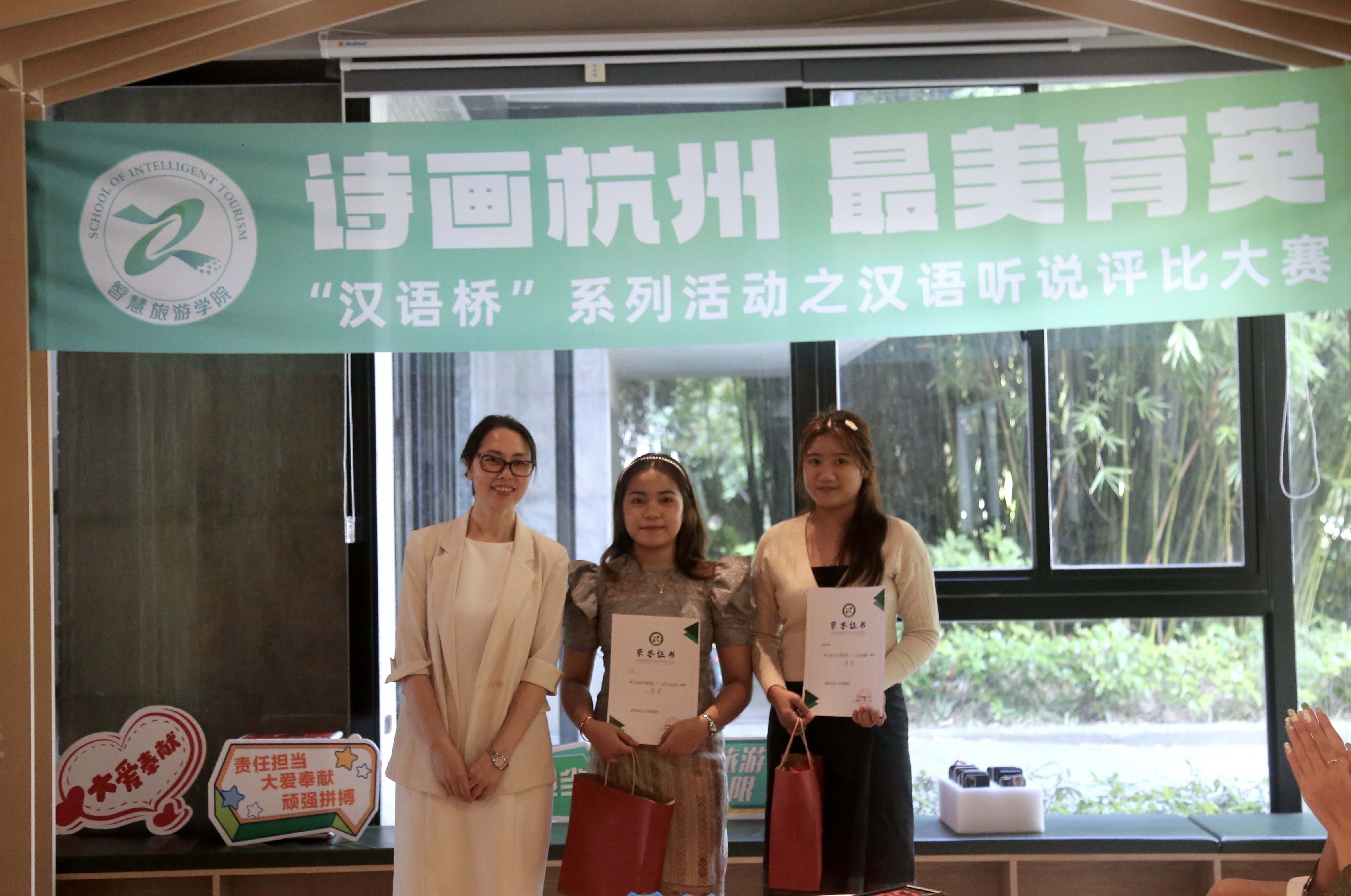 六月的杭州,仿佛一幅流动的画卷,诗意与美景交融。在这个充满生机的季节,智慧旅游学院隆重举办了“诗画杭州 情系育英——‘汉语桥’系列活动之汉语听说评比大赛”。大赛评委阵容强大,包括智慧旅游学院党总支副书记张丹、酒店英语专家葛秀华老师以及富有经验的辅导员陈峻荣老师。老挝留学生们的精彩表现尤为引人注目,他们用流畅的汉语赞美了杭州的自然美景,表达了对中华文化的深厚情感,并向他们的汉语语伴和亲人致以深深的感谢。