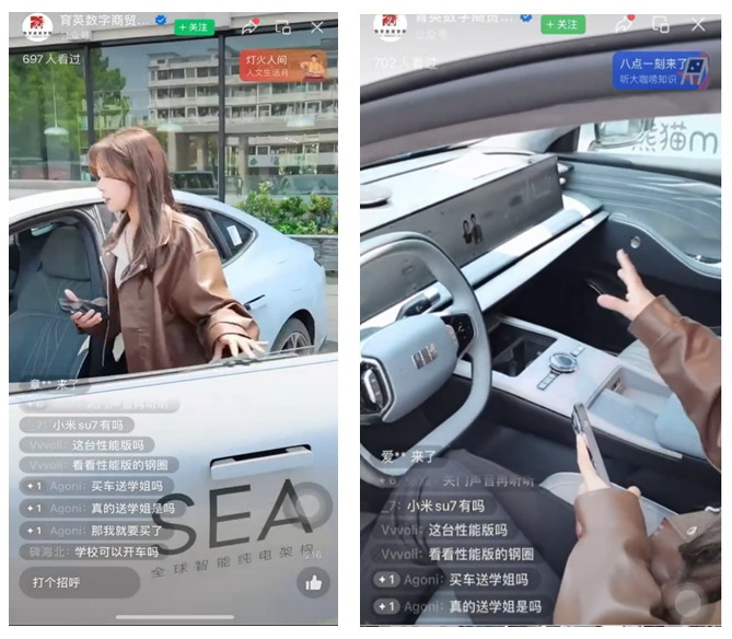 学院300余名师生积极参与此次教学实践活动,他们按照前期的专业课程任务分工,化身为主播、助播、文案策划、内容策划等不同岗位员工,通过现场直播、短视频拍摄、图片采集、文案写作等多种形式,充分应用课堂所学,全方位、多角度地展示吉利汽车的新款车型。这种创新的教学方式不仅让师生们亲身体验了汽车行业的前沿技术,也锻炼了同学们的实践能力和创新能力。