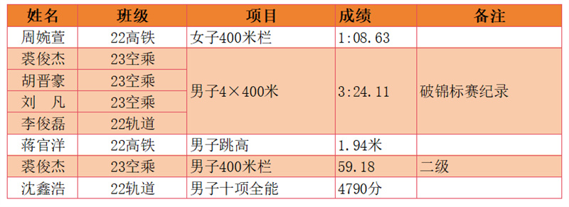 - 2023年8月8日-15日,第21届全国大学生田径锦标赛,5金6银1铜,乙组团体总分第一。