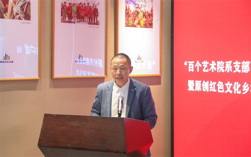 宋连凯介绍创意设计学院与长宁村联村共建项目成果及下一步工作设想。他说, 2020年以来,学院师生在长宁村设立8个助农共富工作室,赴长宁村累计开展活动40余场,参与师生1000余人次,帮助“互助洗衣房、互助养老、互助菜园”等“互助文化”落地生根,形成了“党建共建+设计助农”“互助长宁”经验模式,助力长宁村获批浙江省首批“红色根脉”强基示范村。下一步将继续深化“党建引领+设计助农”,通过艺术设计赋能长宁村文旅新业态,选派优秀年轻干部担任长宁村美丽乡村建设指导员,联合浙江省文化创意产业协会及高校力量,举办以长宁村乡村振兴为主题的设计赛事等。把长宁村的具体服务项目纳入学院各专业课程教学实践中,有目标、有指导、力求落地,帮助长宁村增加收益、扩大影响力。让更多年轻大学生走进长宁村,通过年轻创意激发乡村活力。希望创意设计学院与长宁村的共建项目不断深化、成为浙江高校百个艺术院系支部联村共建的示范项目、品牌项目。