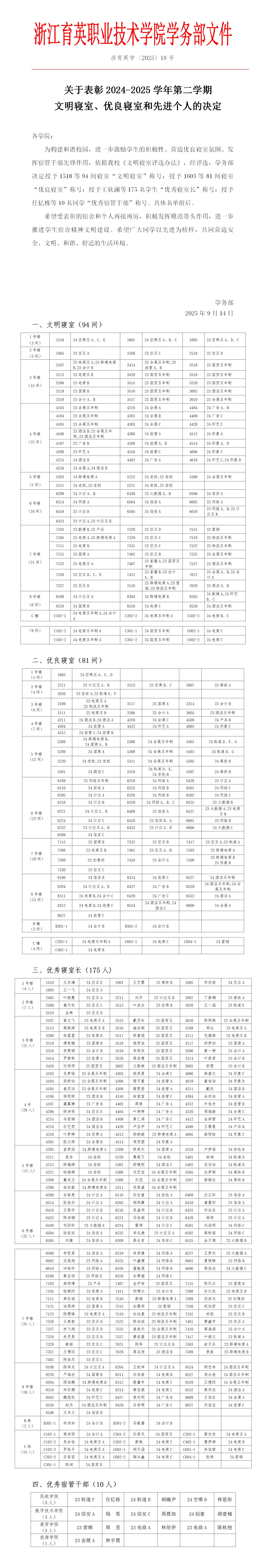 关于表彰2024-2025学年第二学期文明寝室、优良寝室和先进个人的决定